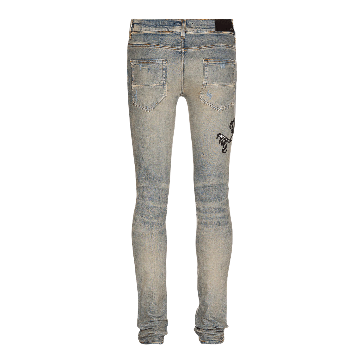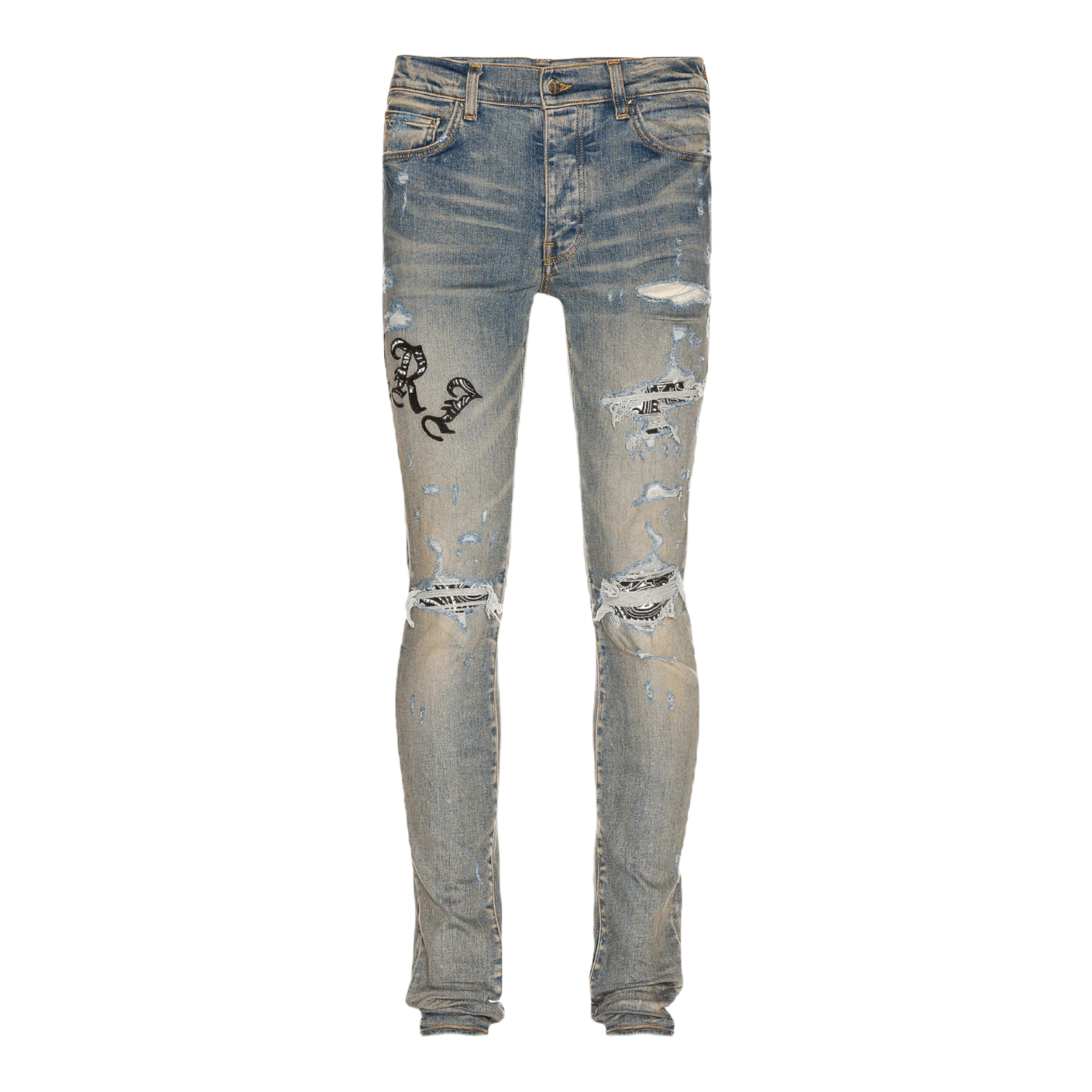 Amiri Old English Logo Bandana Patch Jeans Clay Indigo Multi