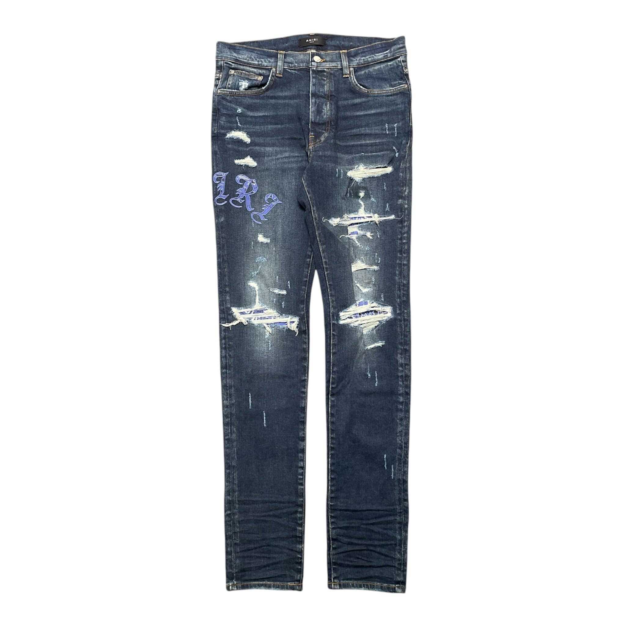Amiri Old English Logo Bandana Patch Jeans Deep Classic Indigo Multi