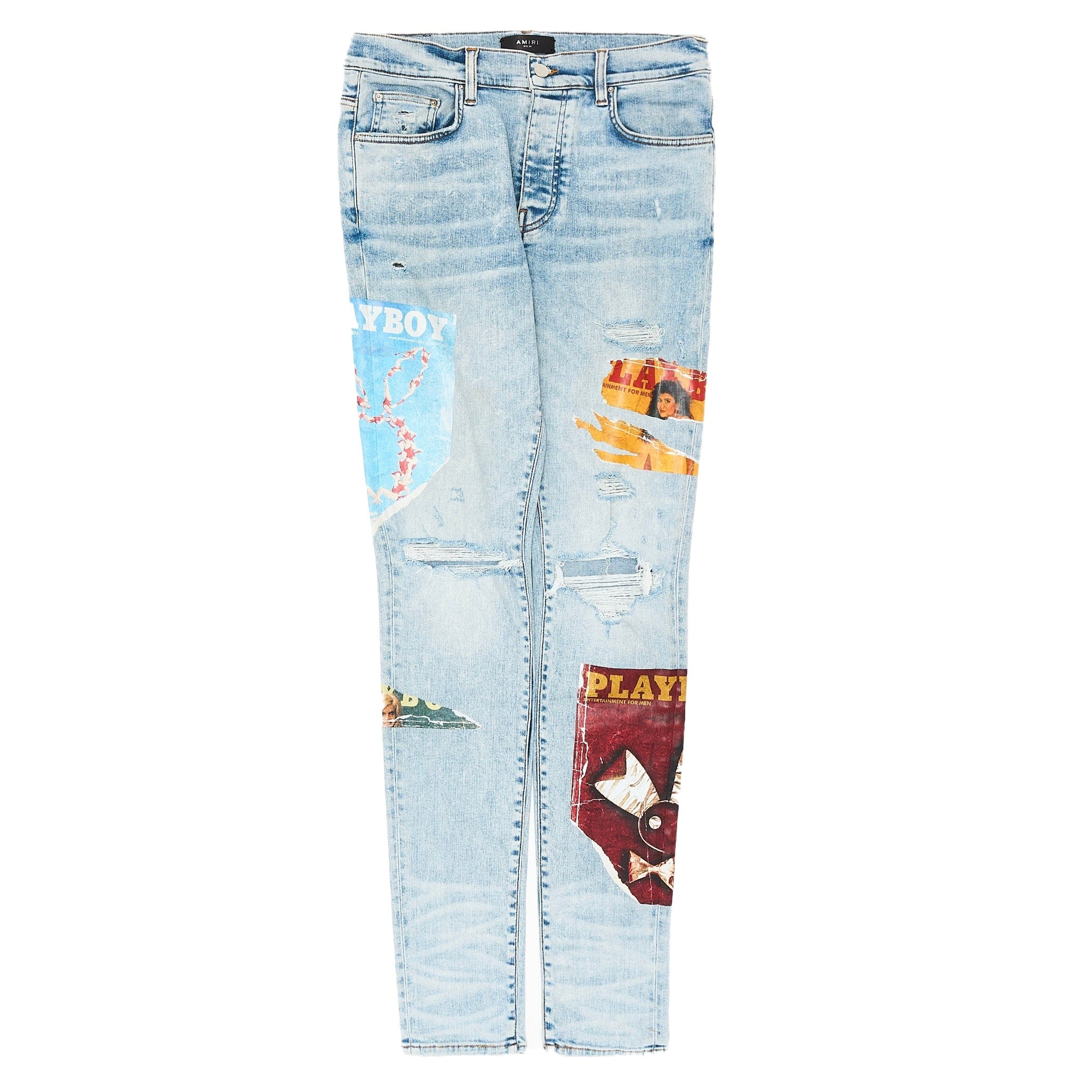 Amiri Playboy Magazine Printed Logo Jeans Light Vintage Indigo Multi