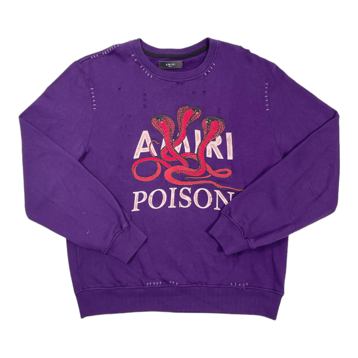 Amiri Distressed Poison Logo Crewneck Sweatshirt Purple Multi