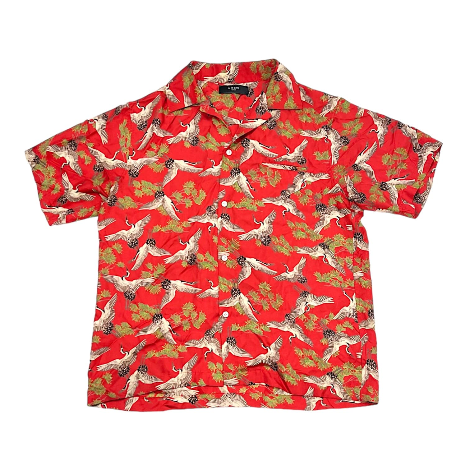 Crane printed silk shirt from Amiri featuring a spread collar, short sleeves, a loose fit, straight hem and all over print.