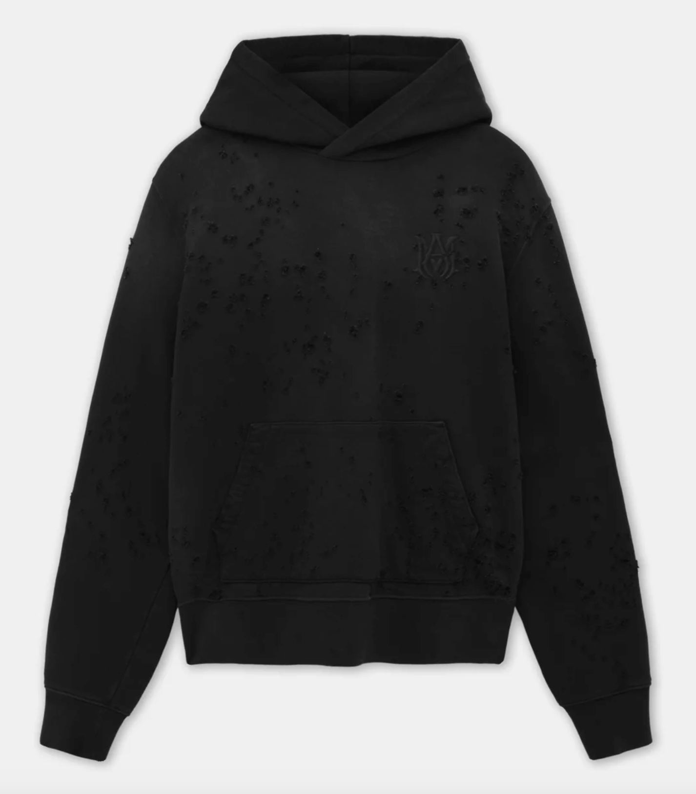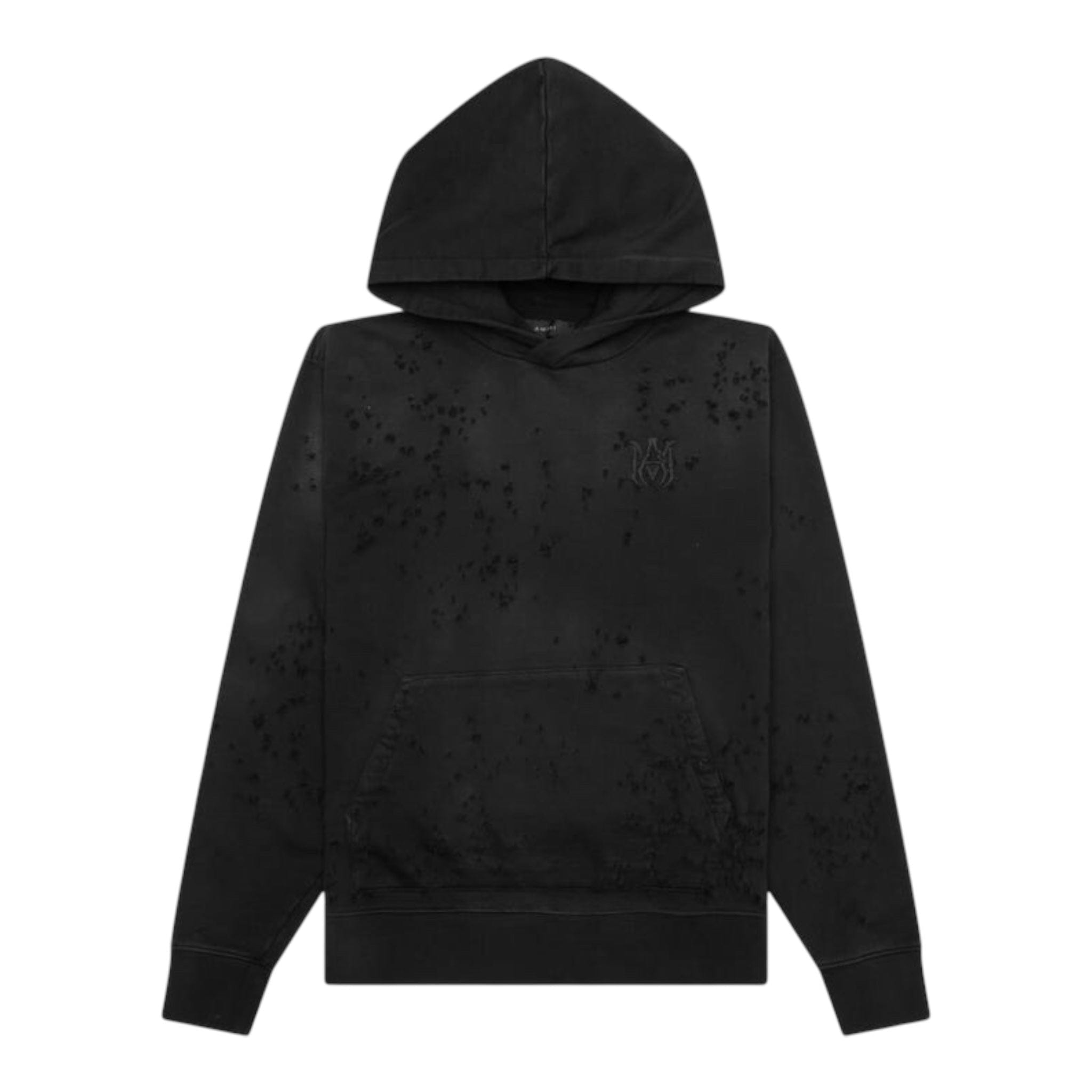 Amiri Shotgun Distressed Embroidered MA Logo Hooded Sweatshirt Black Black
