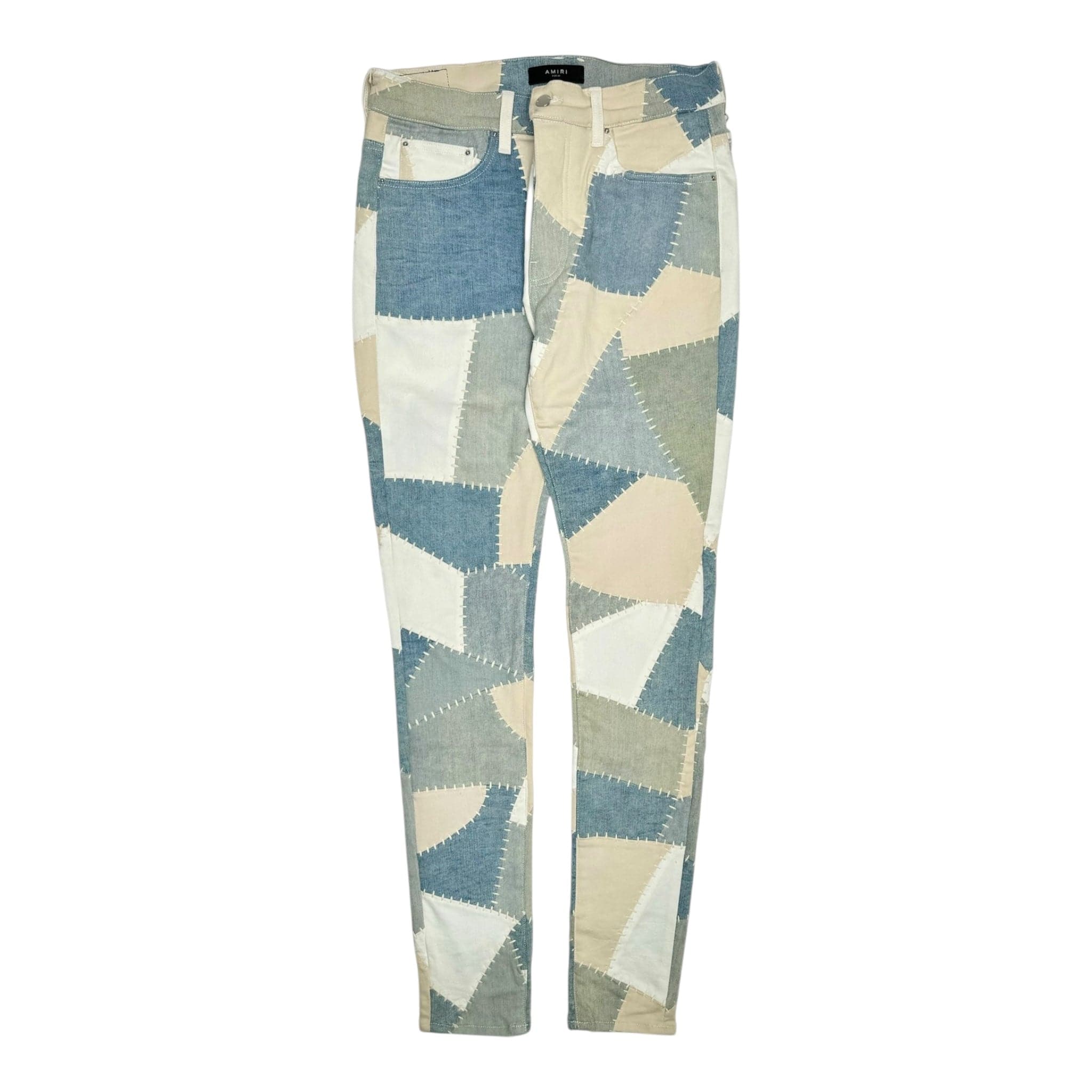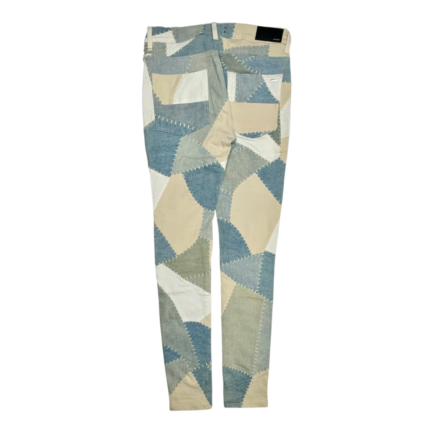 Amiri Skinny Denim Patchwork Jeans Alabaster