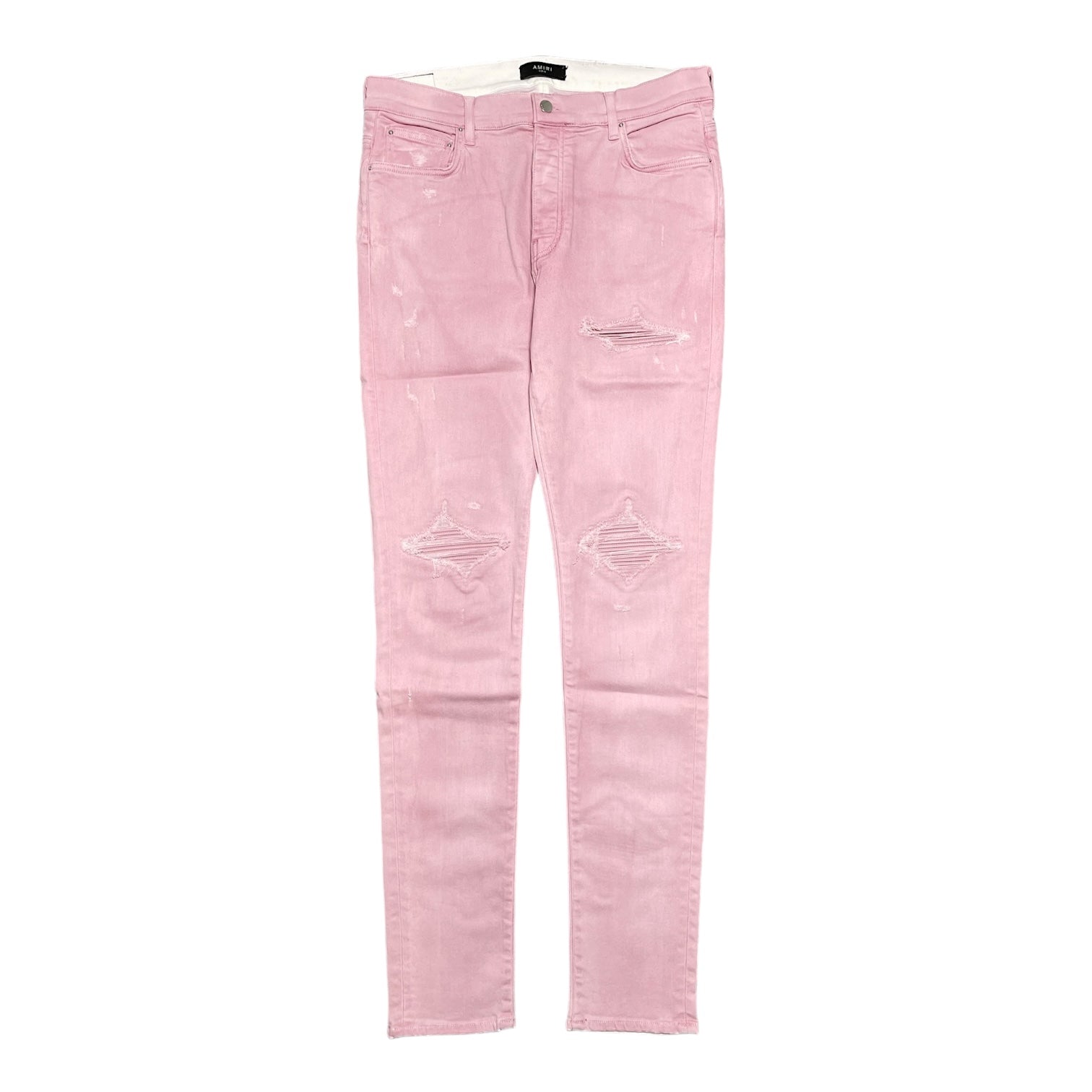 Crafted of stretch cotton-blend denim, these skinny jeans are finished with distressed detailing that reveals moto-inspired underlays.
