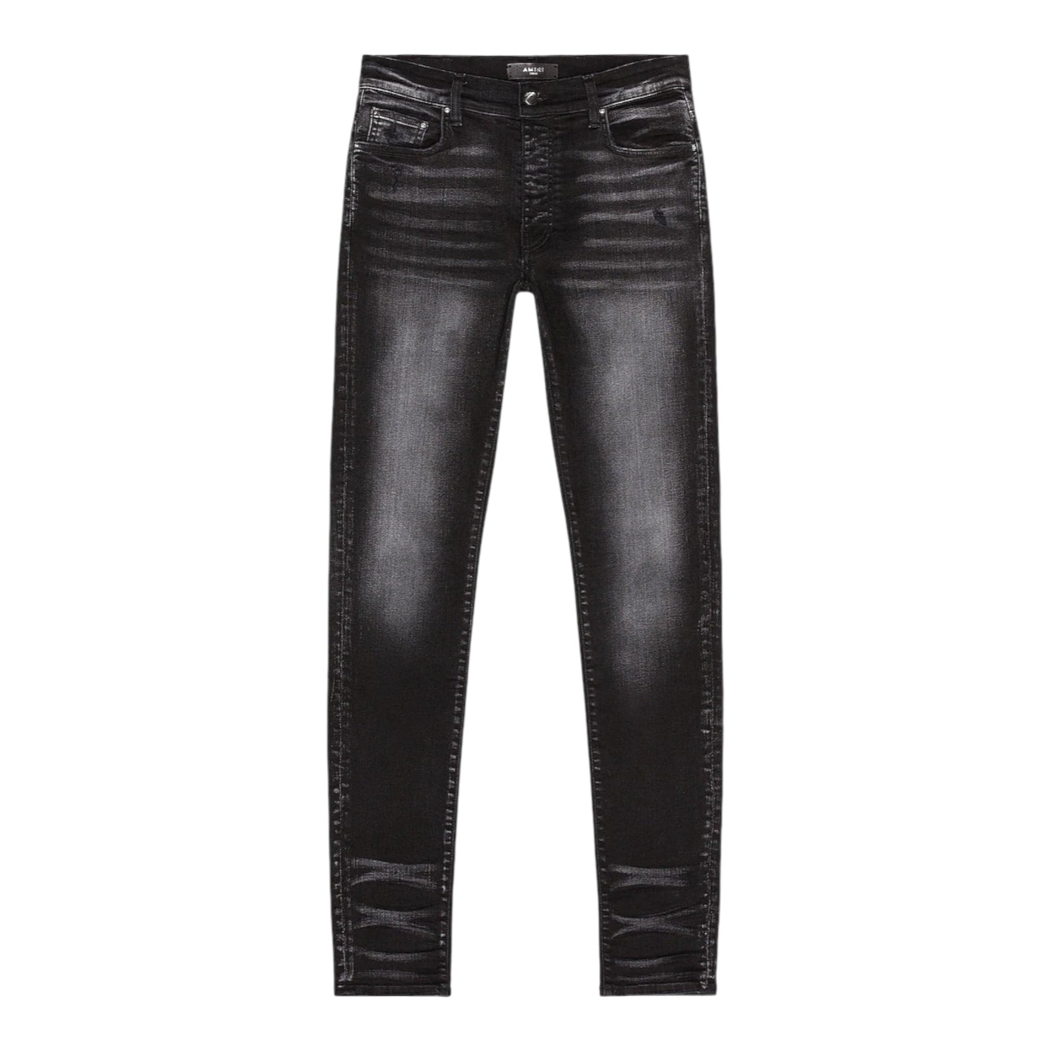 Origins NYC offers this pair Amiri Stack Jeans in Aged Black.