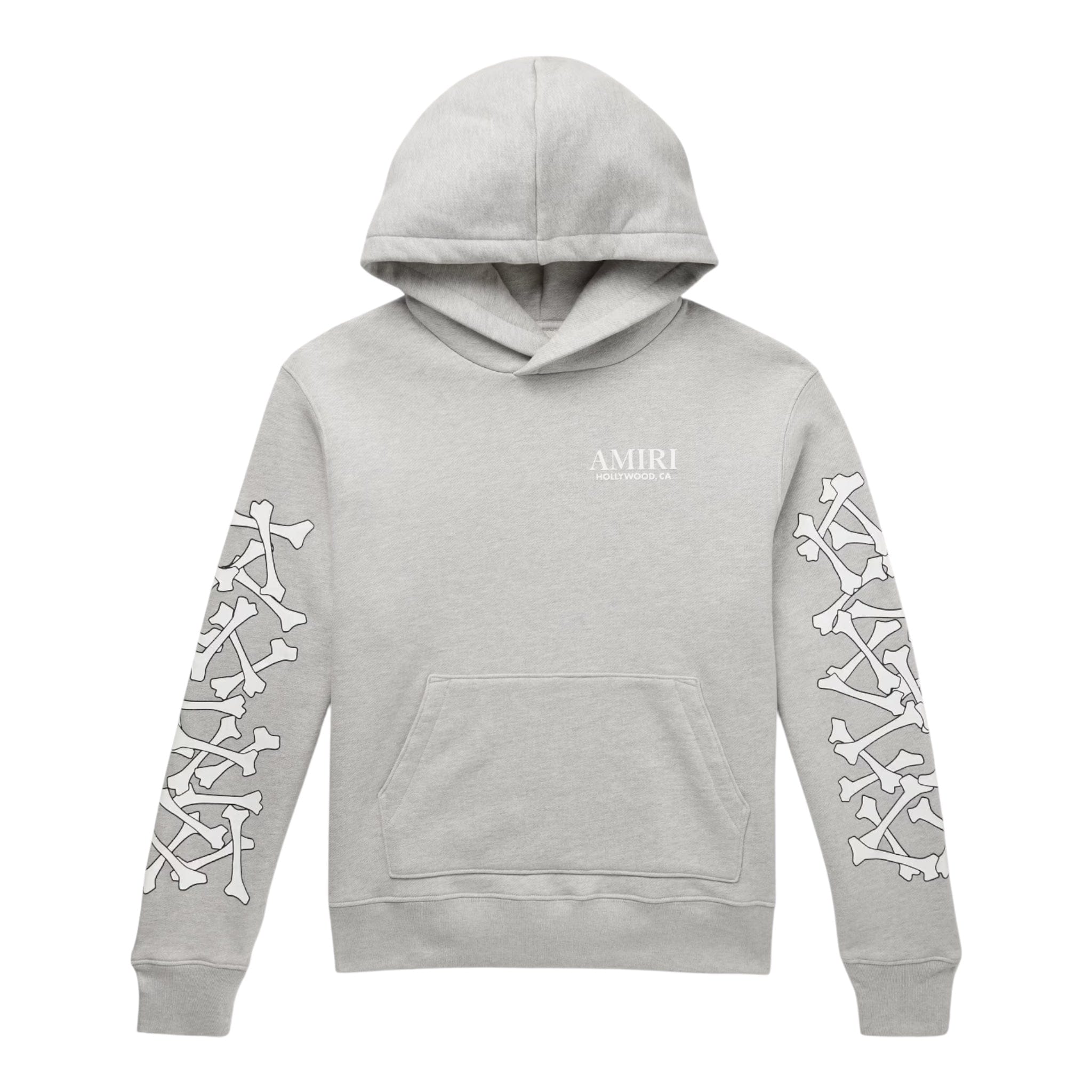 Amiri Stacked Bones Logo Hooded Sweatshirt Grey White