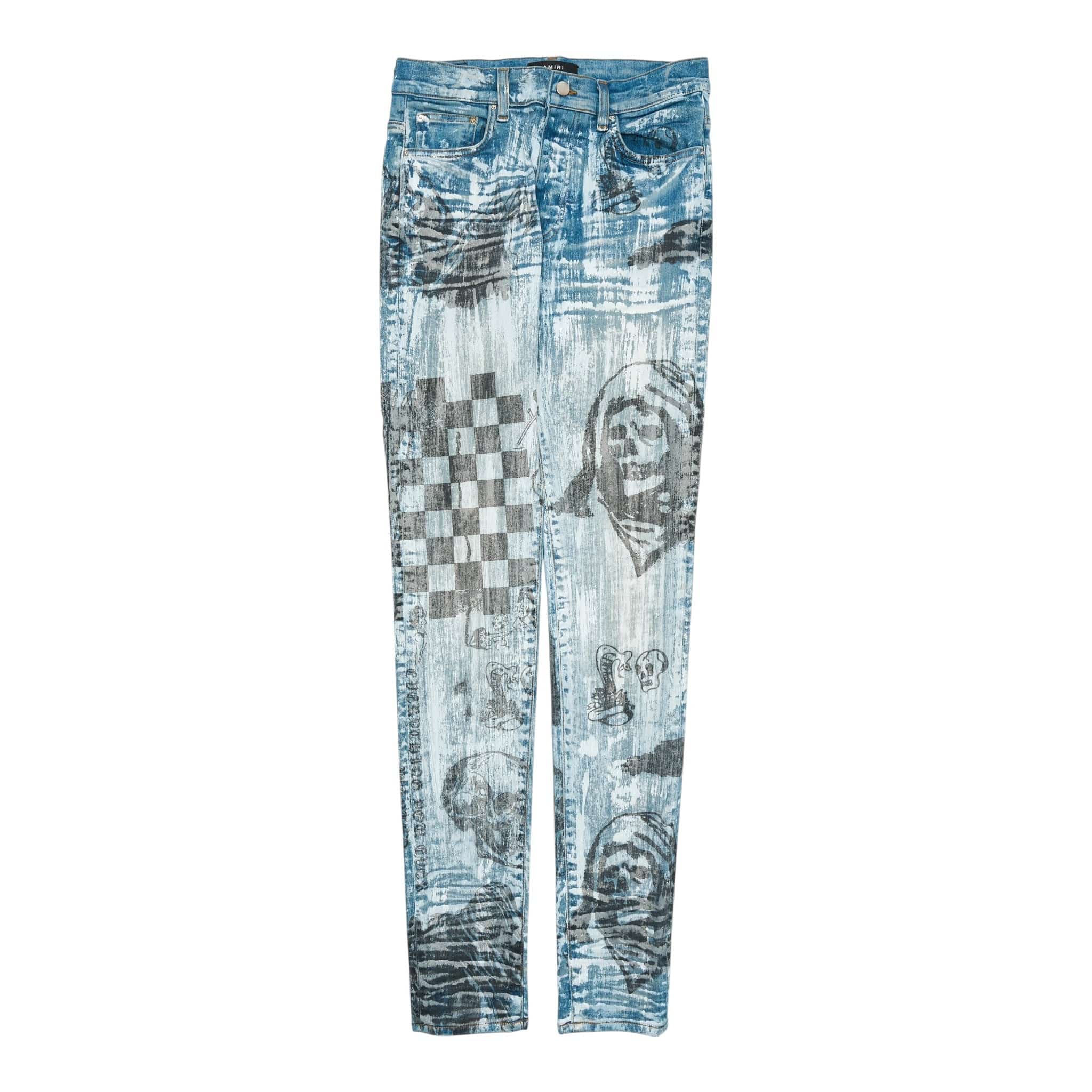 Amiri x Wes Lang Reaper Sketch Logo Jeans Painted Indigo Multi