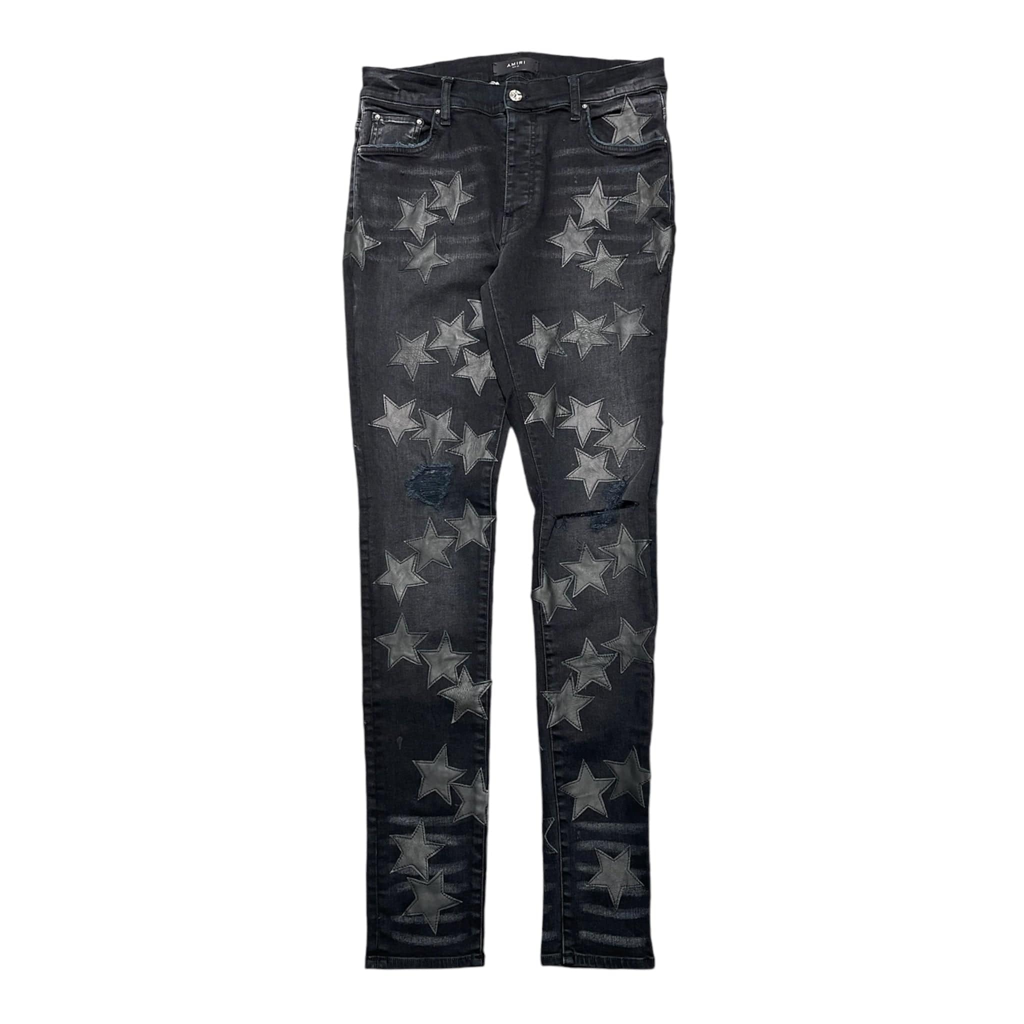 Amiri x Chemist Leather Star Patch Jeans Antique Black Black