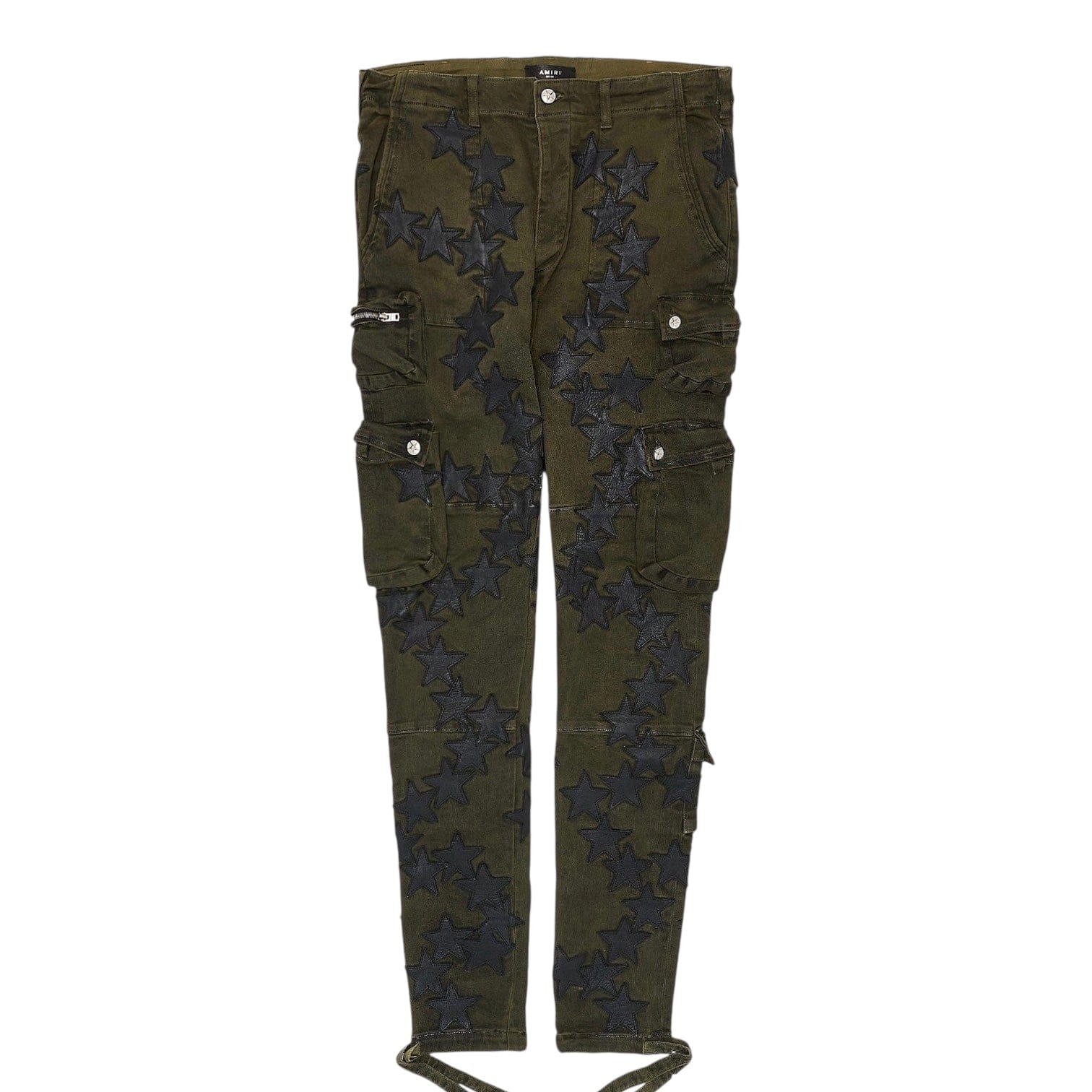 Amiri x Chemist Black Leather Star Patch Tactical Cargo Jeans Olive Green