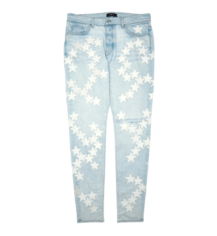 Amiri x Chemist White Leather Star Patch Jeans Vintage Sky Indigo