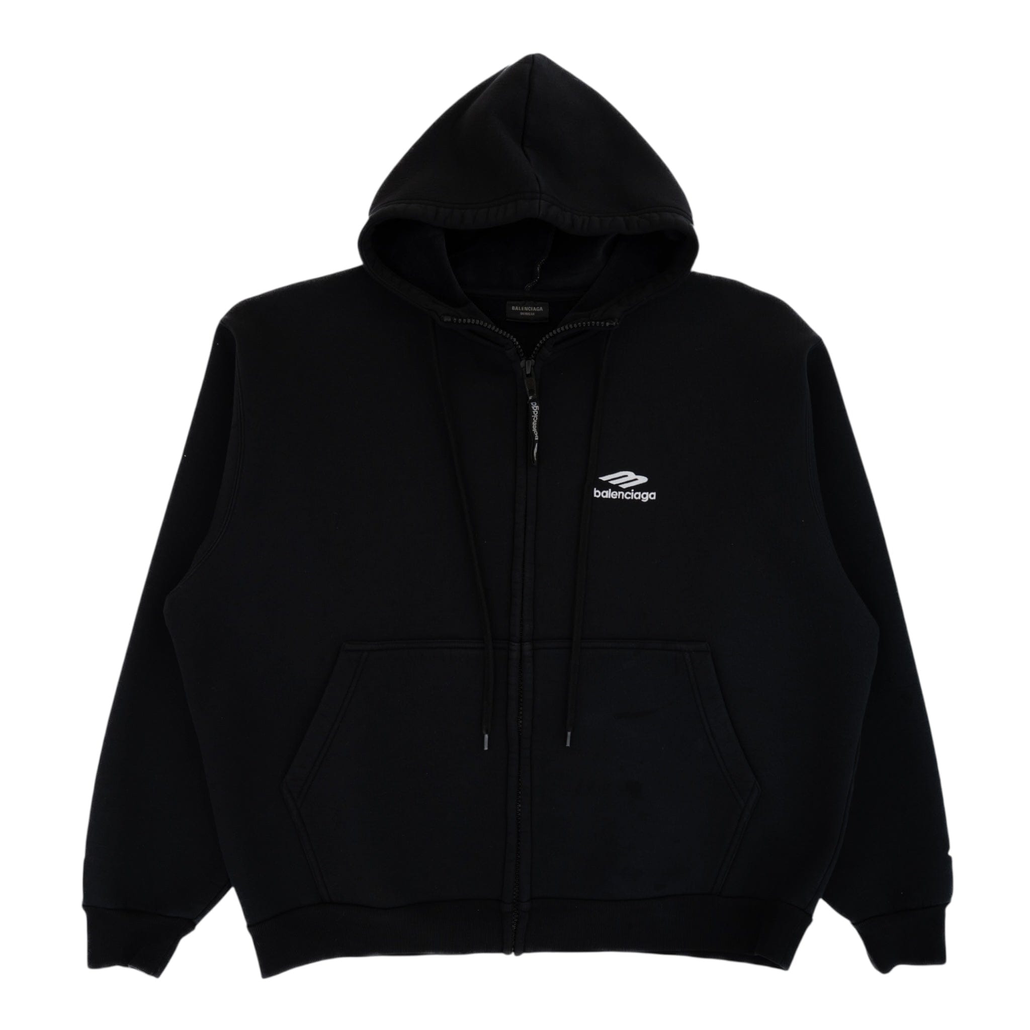 Balenciaga Embroidered 3B Sports Icon Logo Zip Up Hooded Sweatshirt Black White