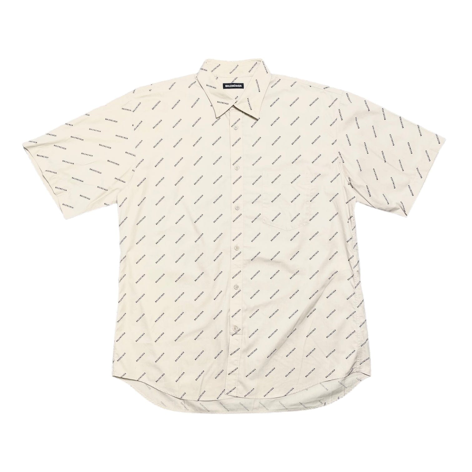 Balenciaga All Over Logo Short Sleeve Button Up Shirt Sand
