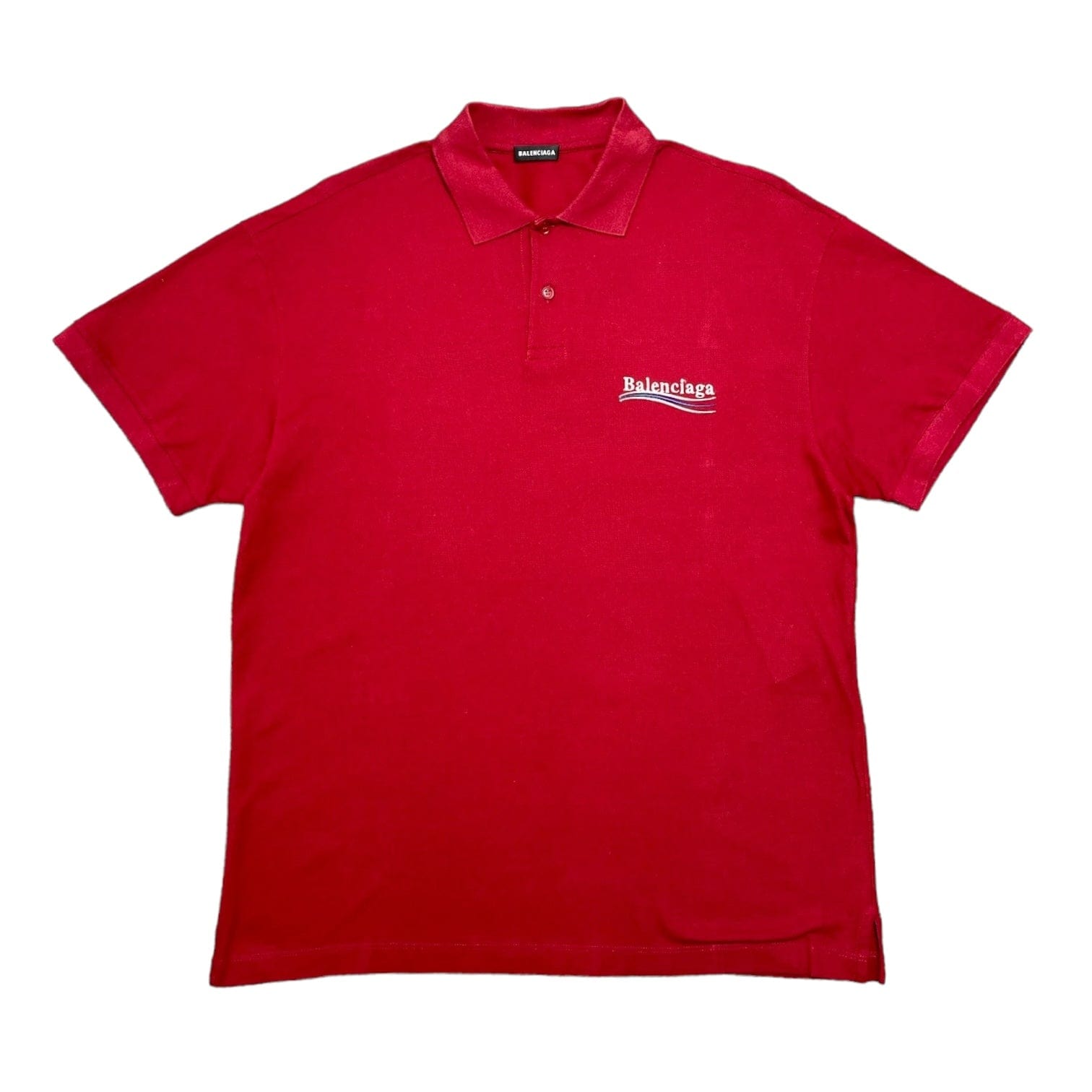 Balenciaga Political Campaign Embroidered Short Sleeve Polo Tee Shirt Red Multi
