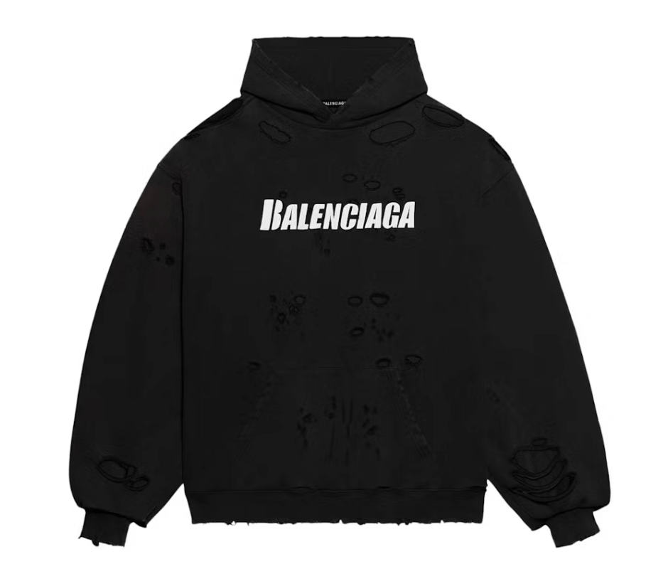 Balenciaga Caps Lightly Destroyed Hooded Sweatshirt Black