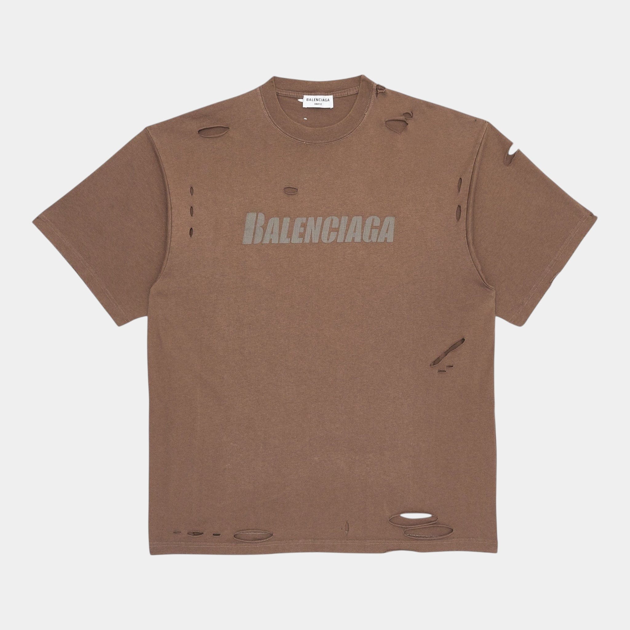 Balenciaga Distressed Oversized Caps Logo Short Sleeve Tee Shirt Taupe Grey