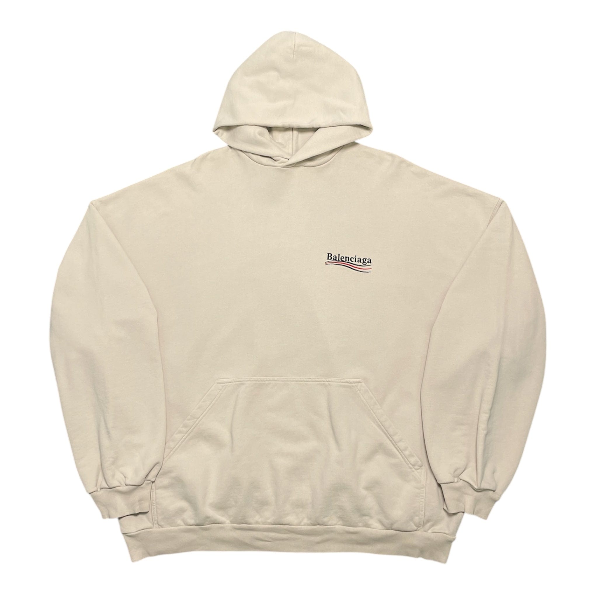 Balenciaga Political Campaign Logo Embroidered Hooded Sweatshirt Light Beige Multi