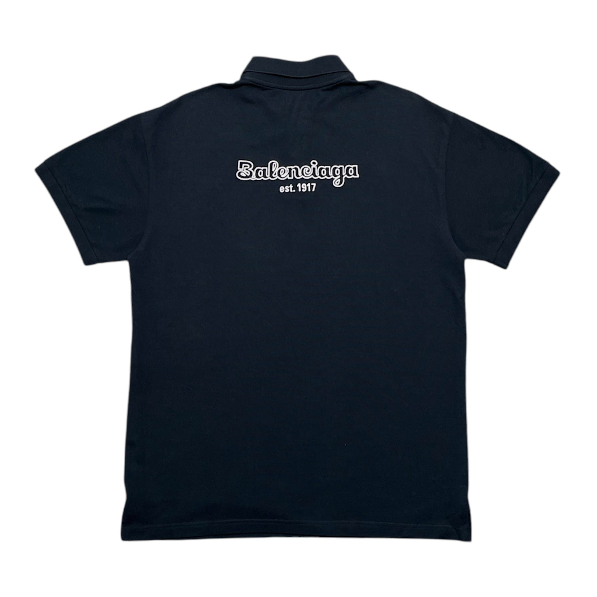 Balenciaga Embroidered Established Polo Tee Shirt Navy Blue