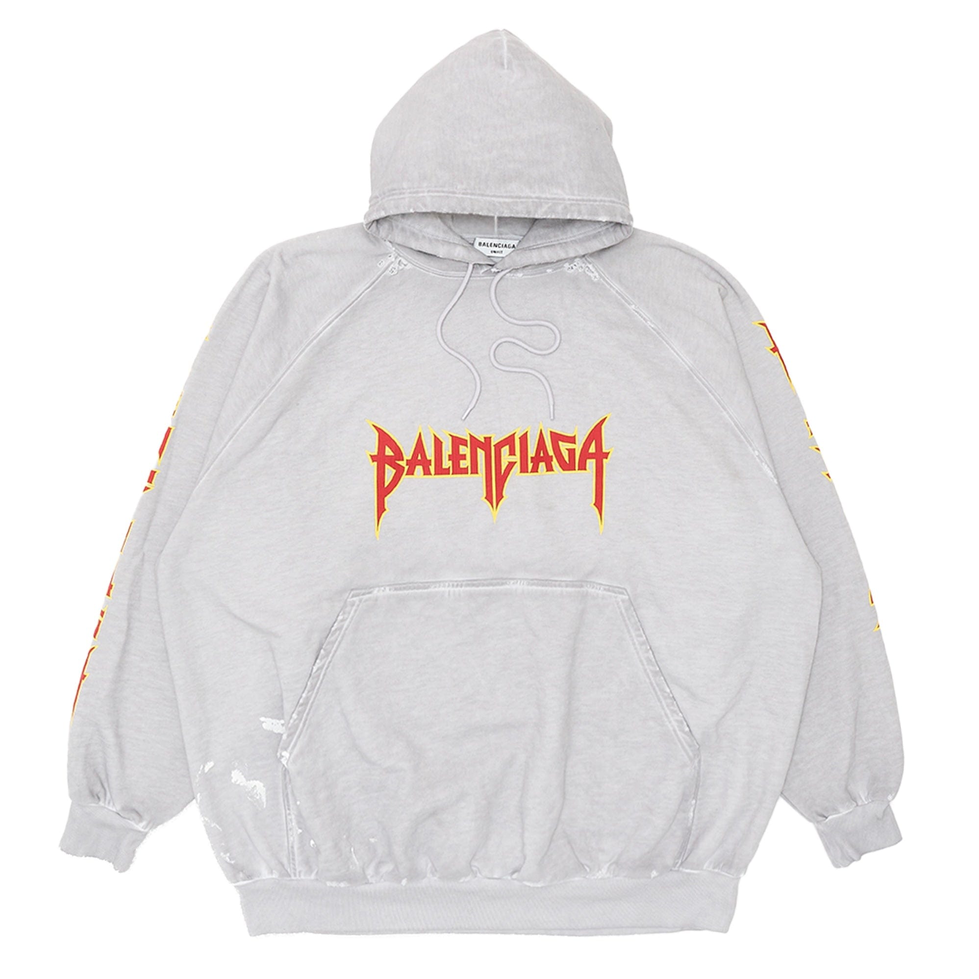 Balenciaga Oversized Painted Vintage Metal Logo Hooded Sweatshirt Dirty White Red Yellow