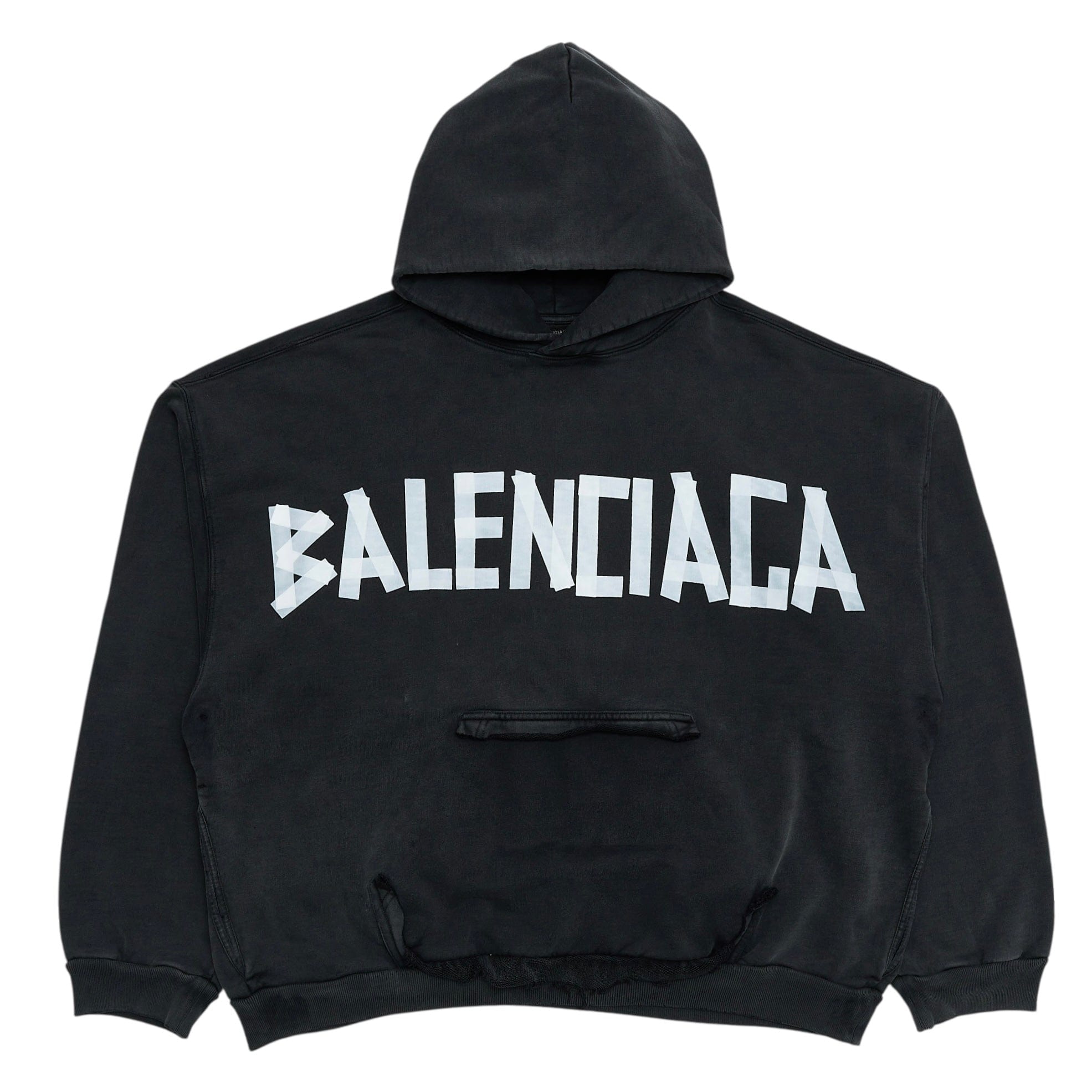 Balenciaga New Tape Logo Hooded Sweatshirt Black White