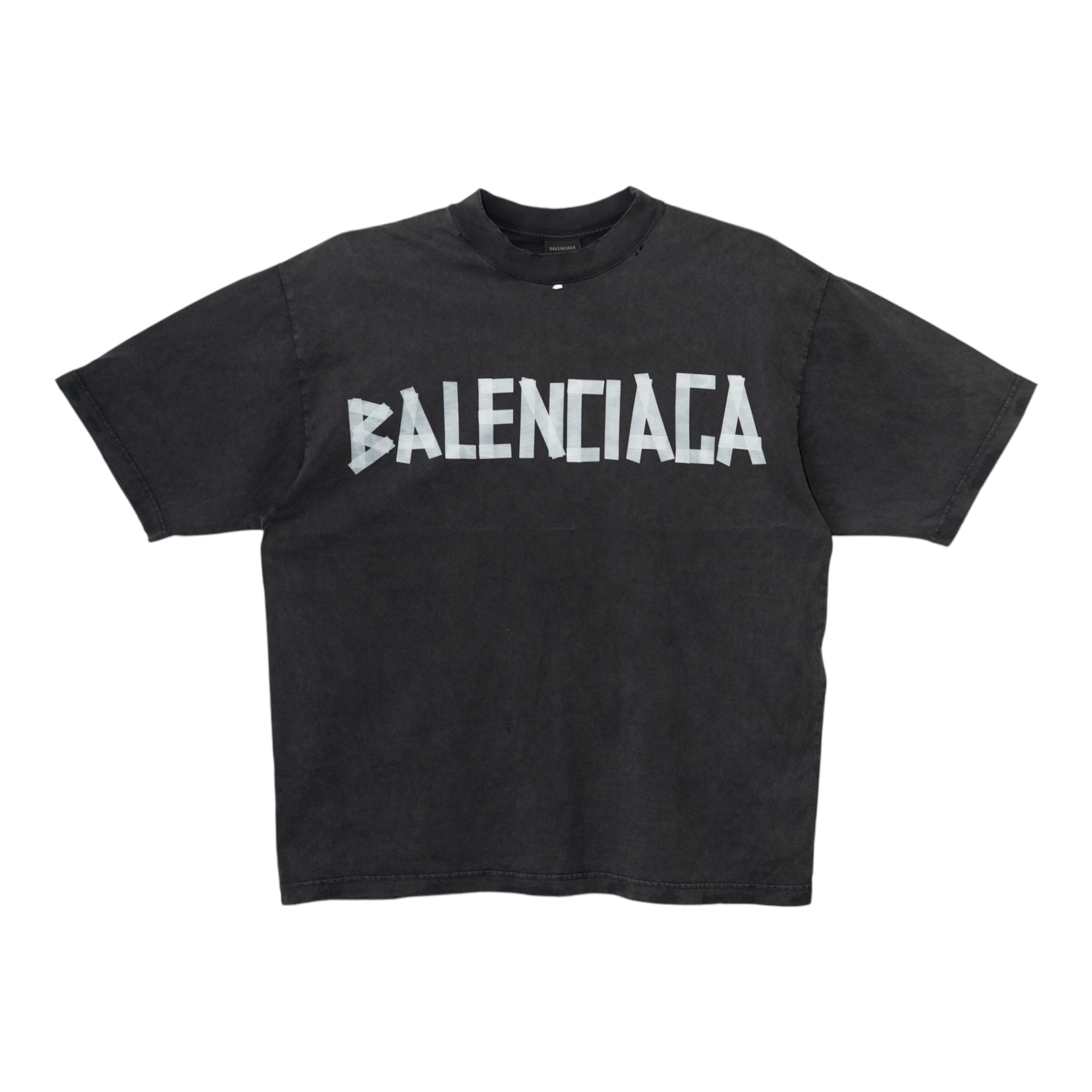 Balenciaga New Tape Type TR Short Sleeve Tee Shirt Faded Black White