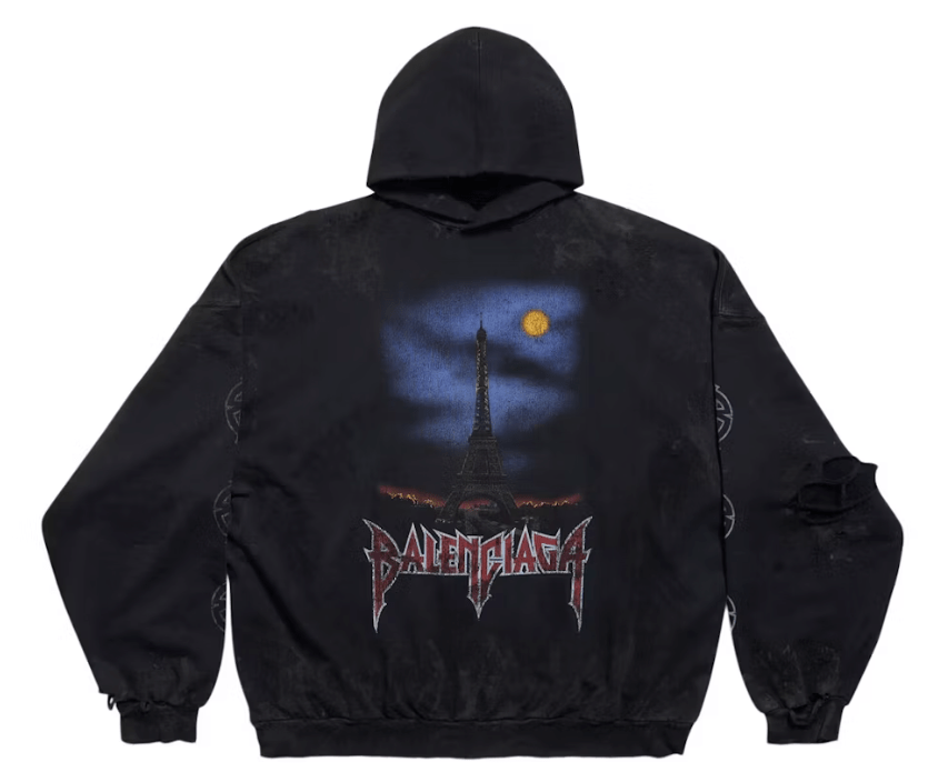 Balenciaga Paris Moon Distressed Hooded Sweatshirt Washed Black