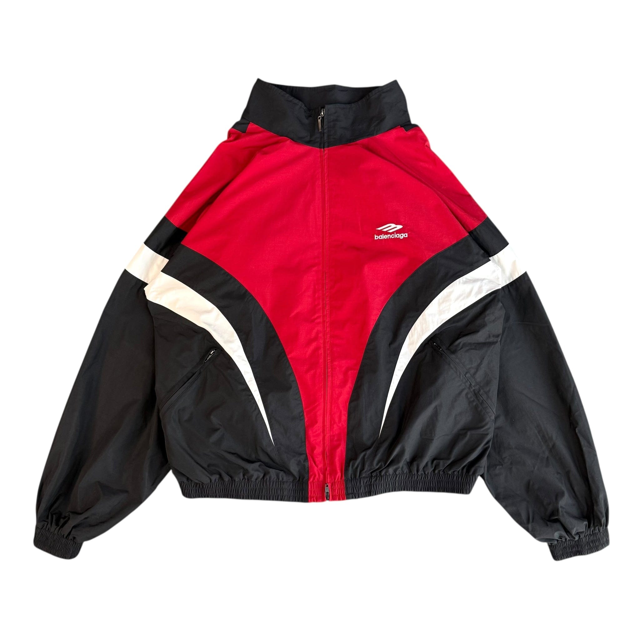 Paneled techno poplin is popped with high-contrast colors and the sporty 3B logo iconography on this track jacket designed to be worn off the shoulder.