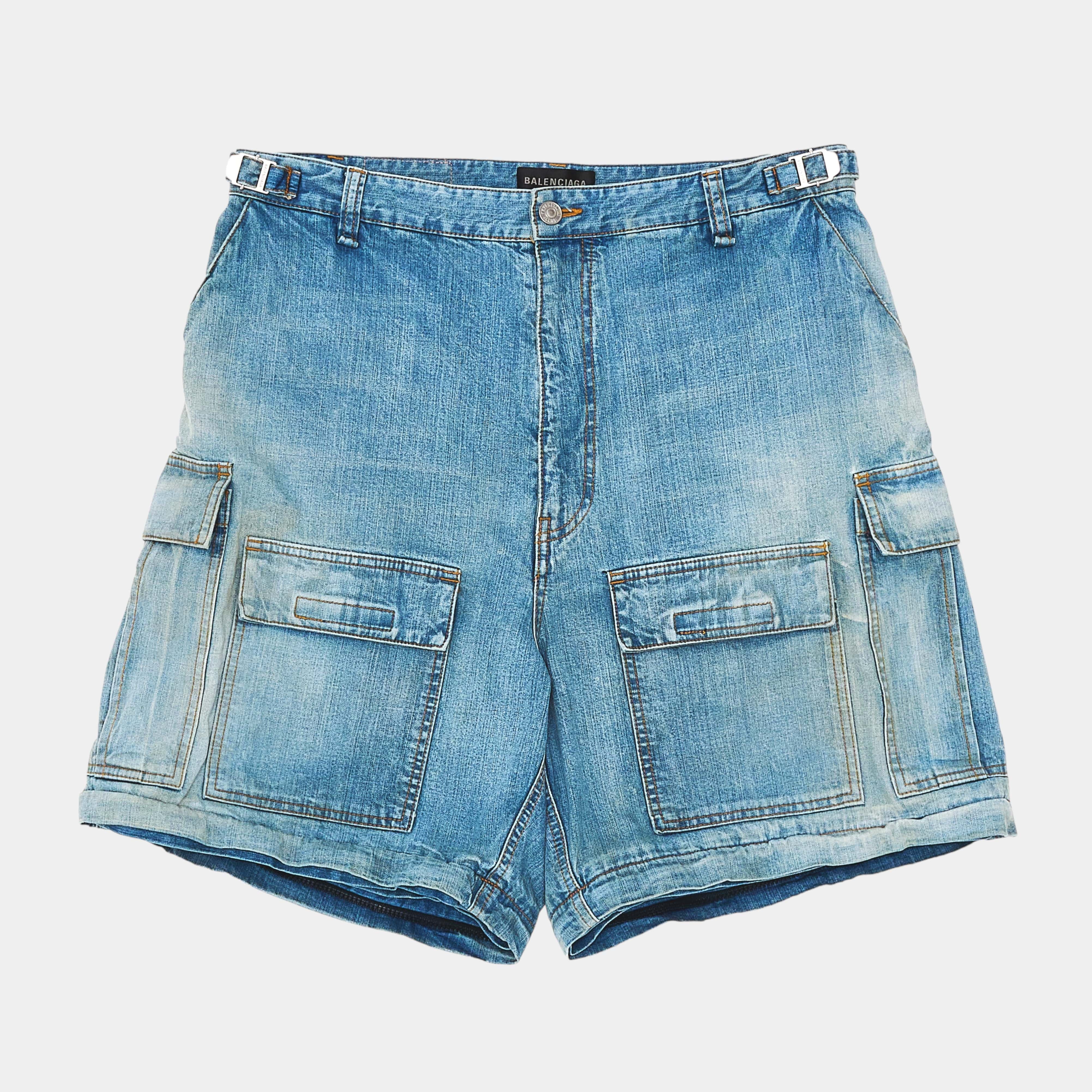 Balenciaga Wide Leg Flare Cargo Pants Denim Pre-Owned