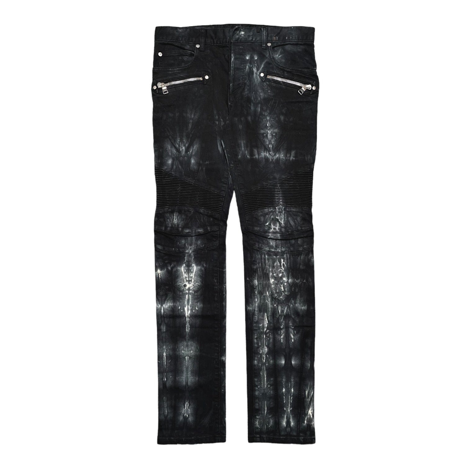 Origins NYC offers this pair of new Balmain Distressed Biker Denim Tie Dye in Black.