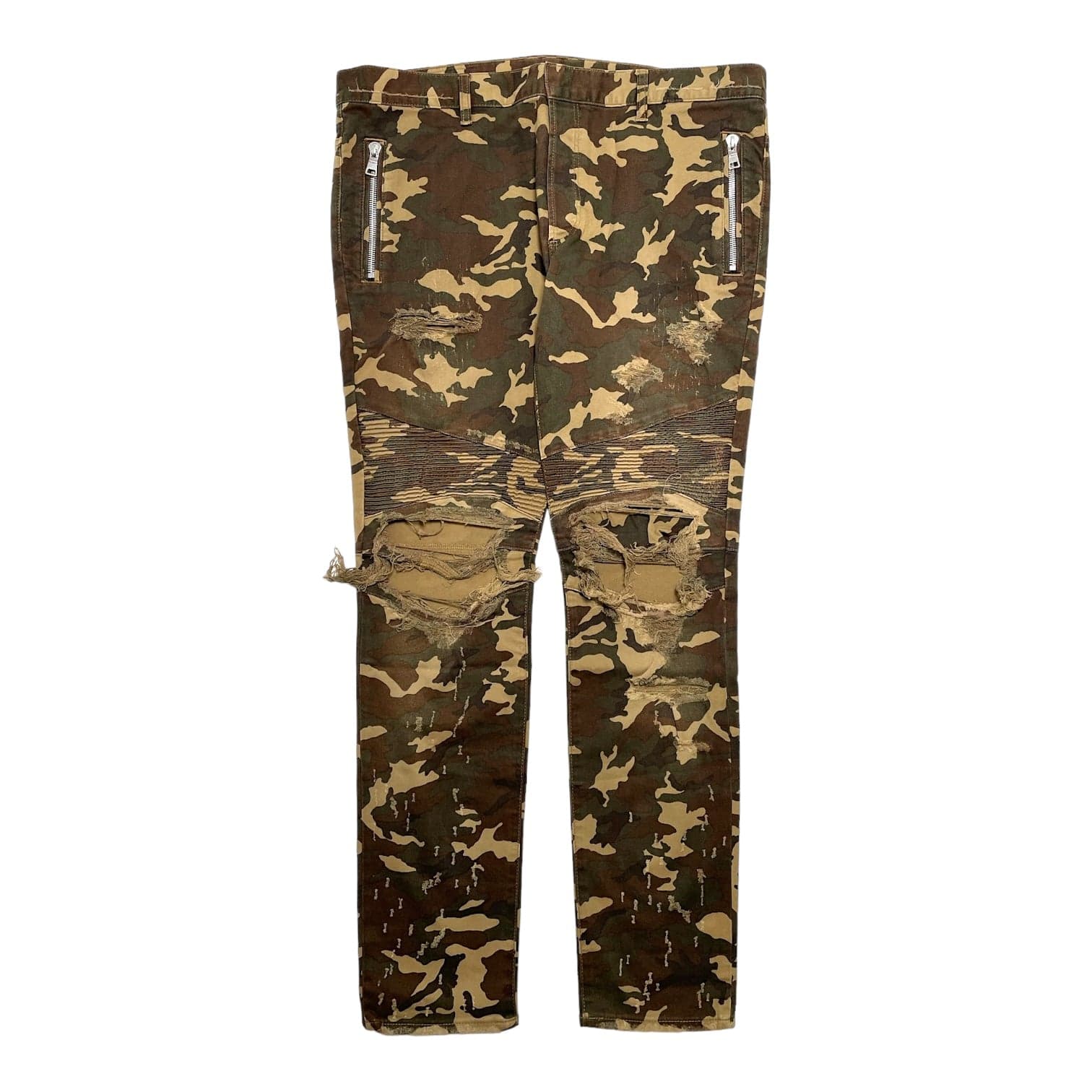 Origins NYC offers this pair of pre-owned Balmain Distressed Biker Denim in Camouflage.