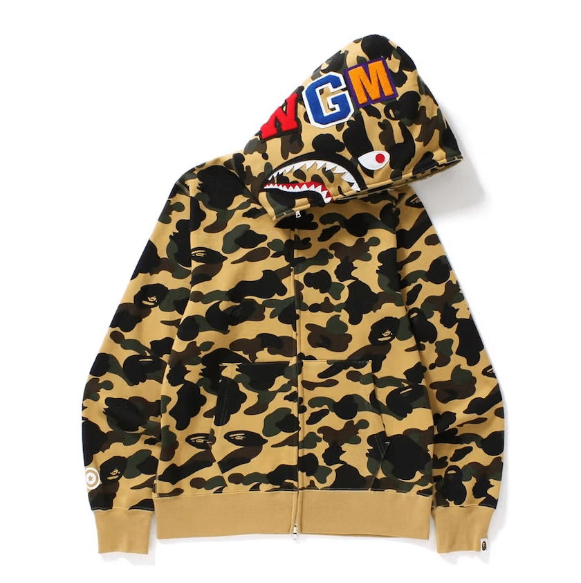 BAPE Shark Full Zip Hooded Sweatshirt Color Camo Yellow