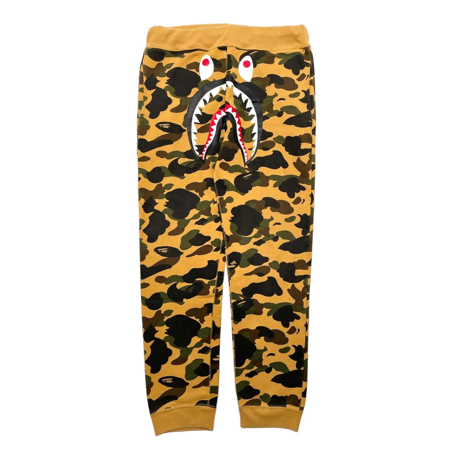 Origins NYC offers this pair of BAPE 1St Camo Shark Slim Sweatpants in Green/Yellow.