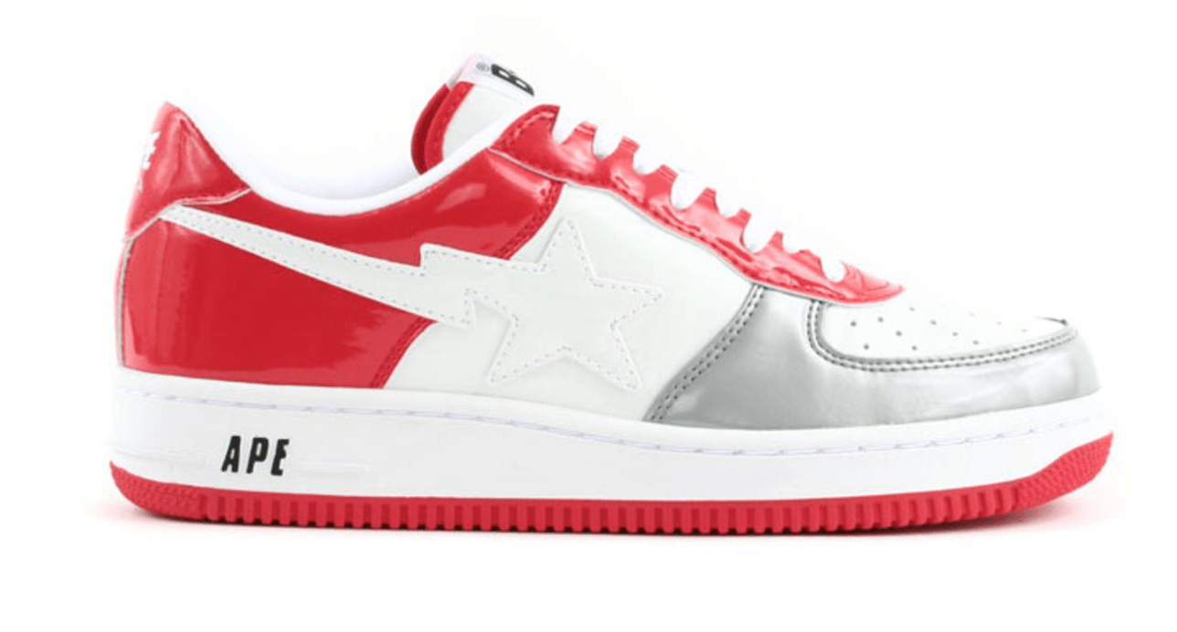 Origins NYC offers this pair of new BAPE Bapesta in the Silver and Red color way.