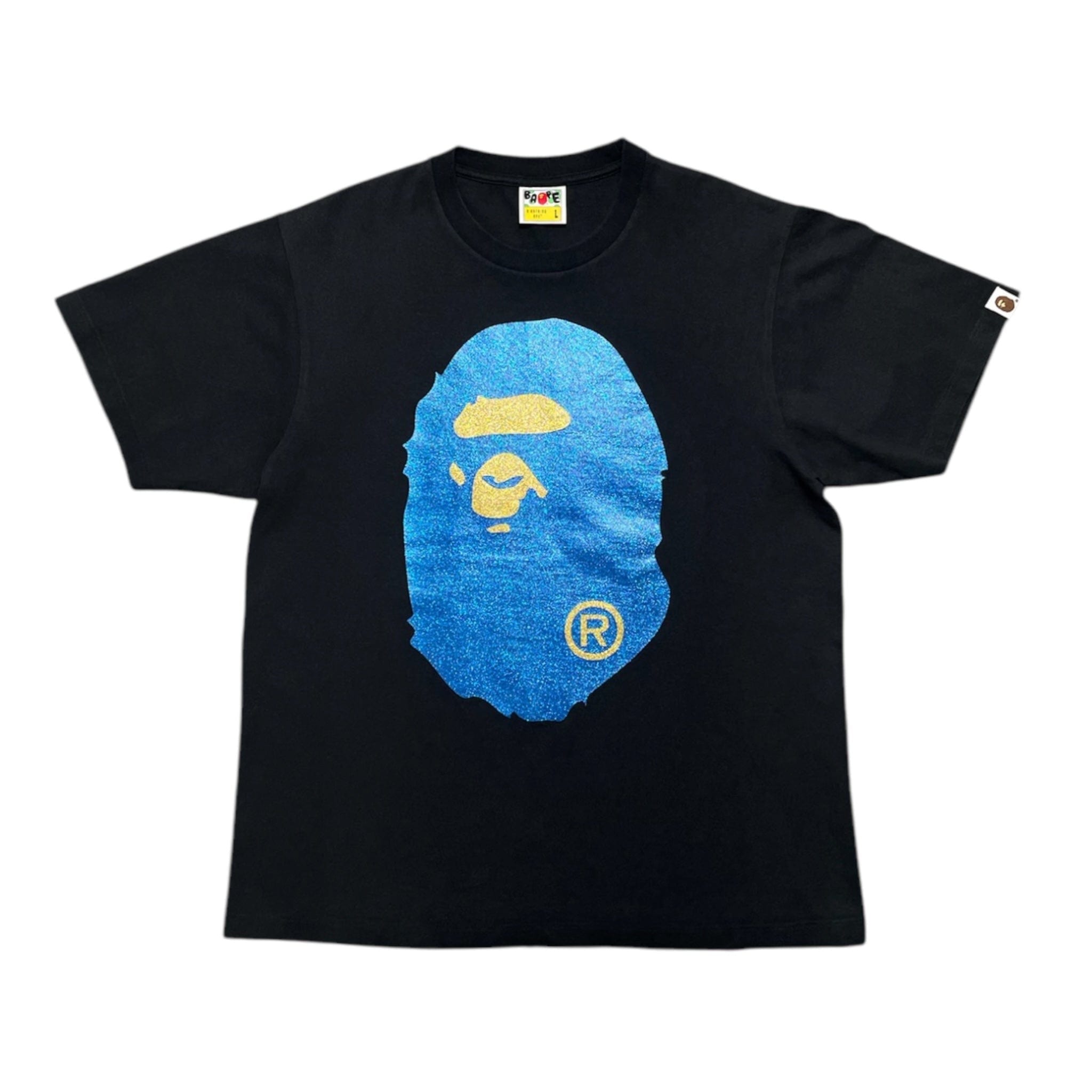 BAPE Big Ape Head Logo Short Sleeve Tee Shirt Glitter Black Blue Multi