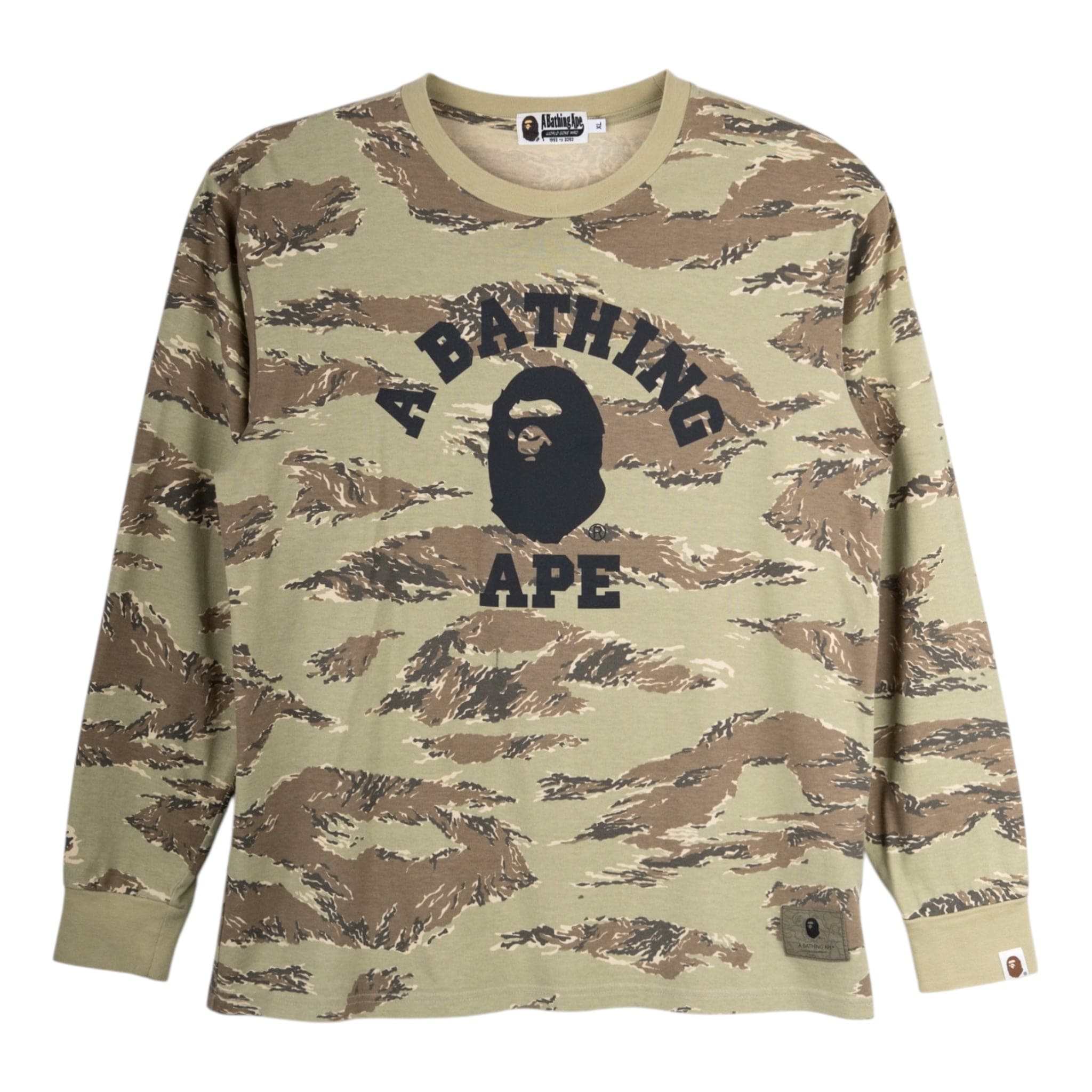 BAPE College Logo Long Sleeve Tee Shirt Tiger Camo Light Green Multi