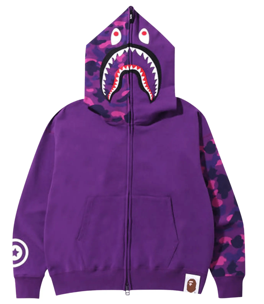 BAPE Giant Shark Loose Fit Full Zip Hooded Sweatshirt Color Camo Purple