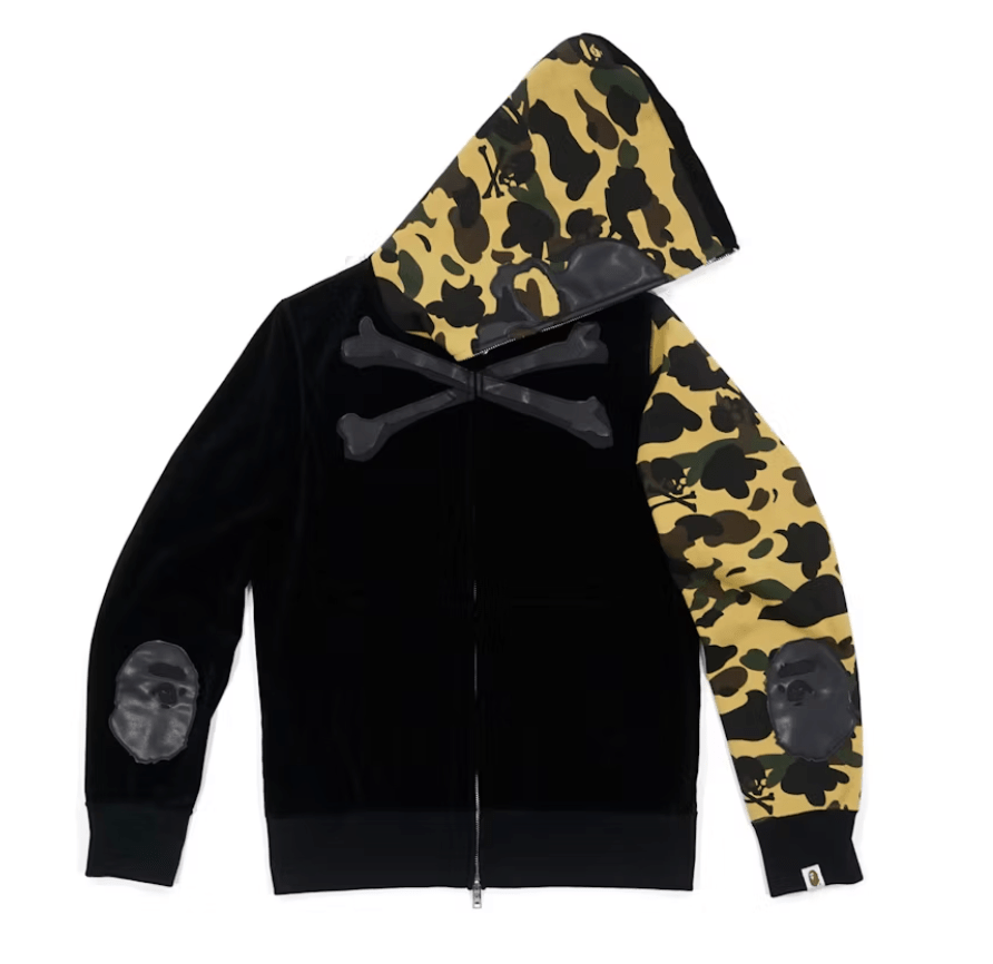BAPE x Mastermind Japan Skull Velvet Hooded Sweatshirt 1st Camo Black Yellow Pre-Owned