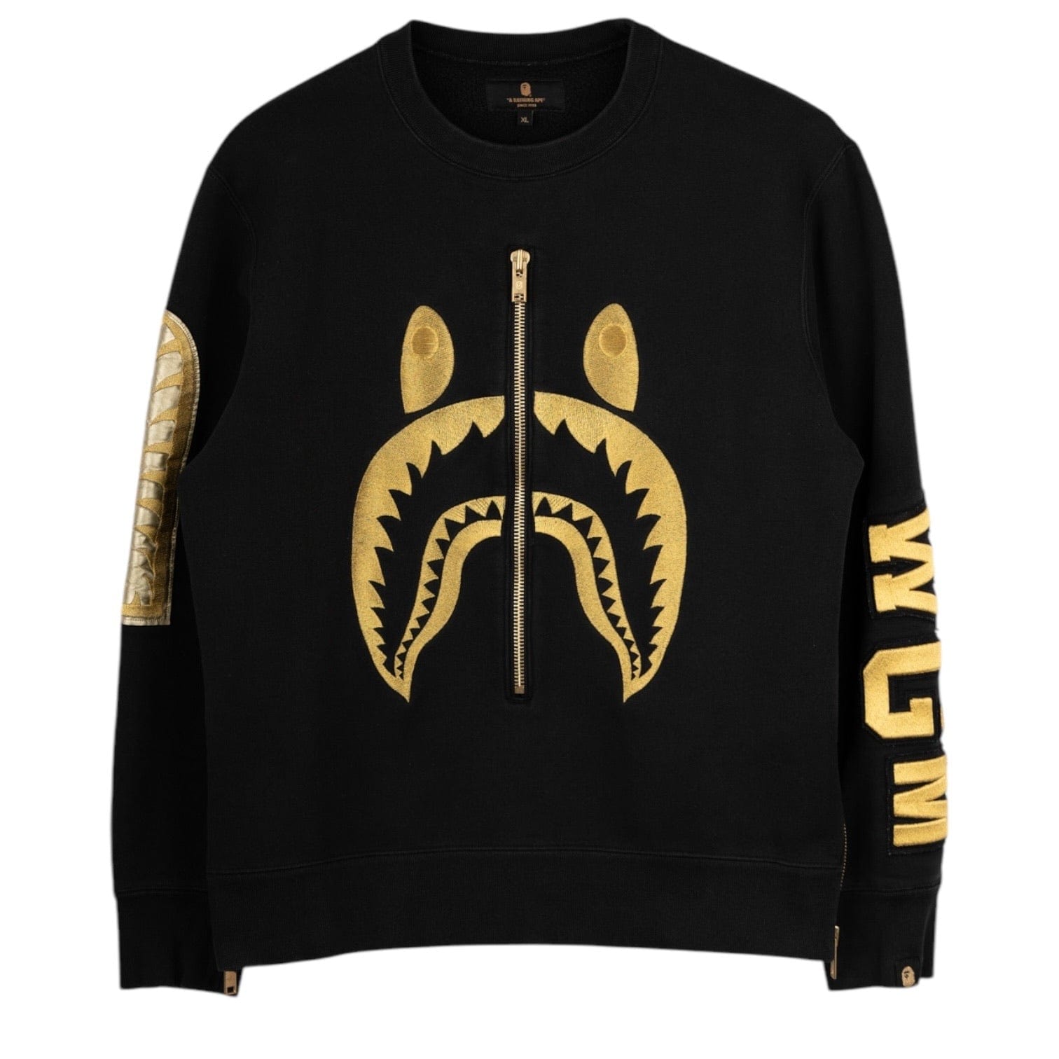 BAPE Shark Logo Crewneck Sweatshirt Black Edition Black Gold