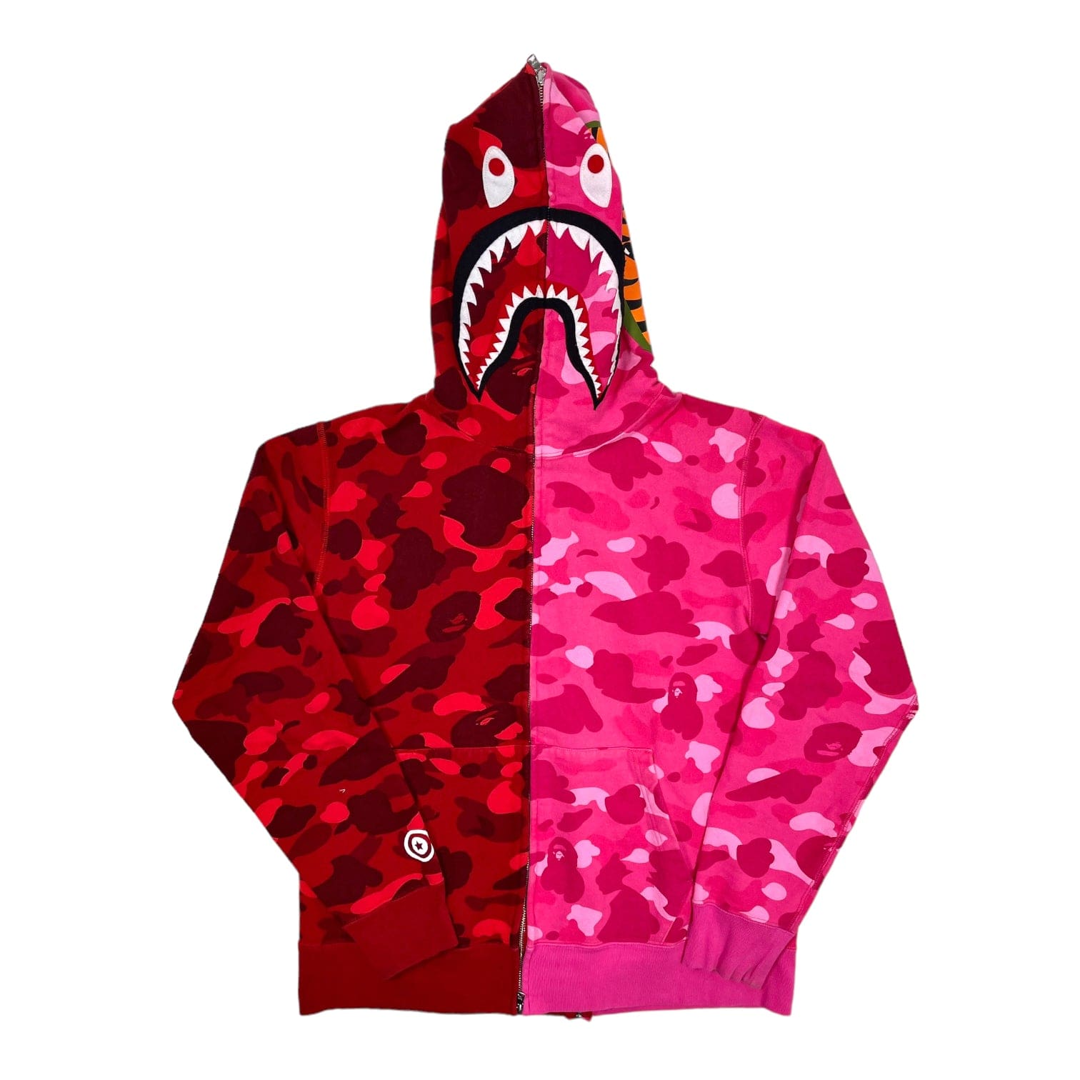 BAPE Shark Full Zip 1/2 Shark Hooded Sweatshirt Color Camo Red Pink