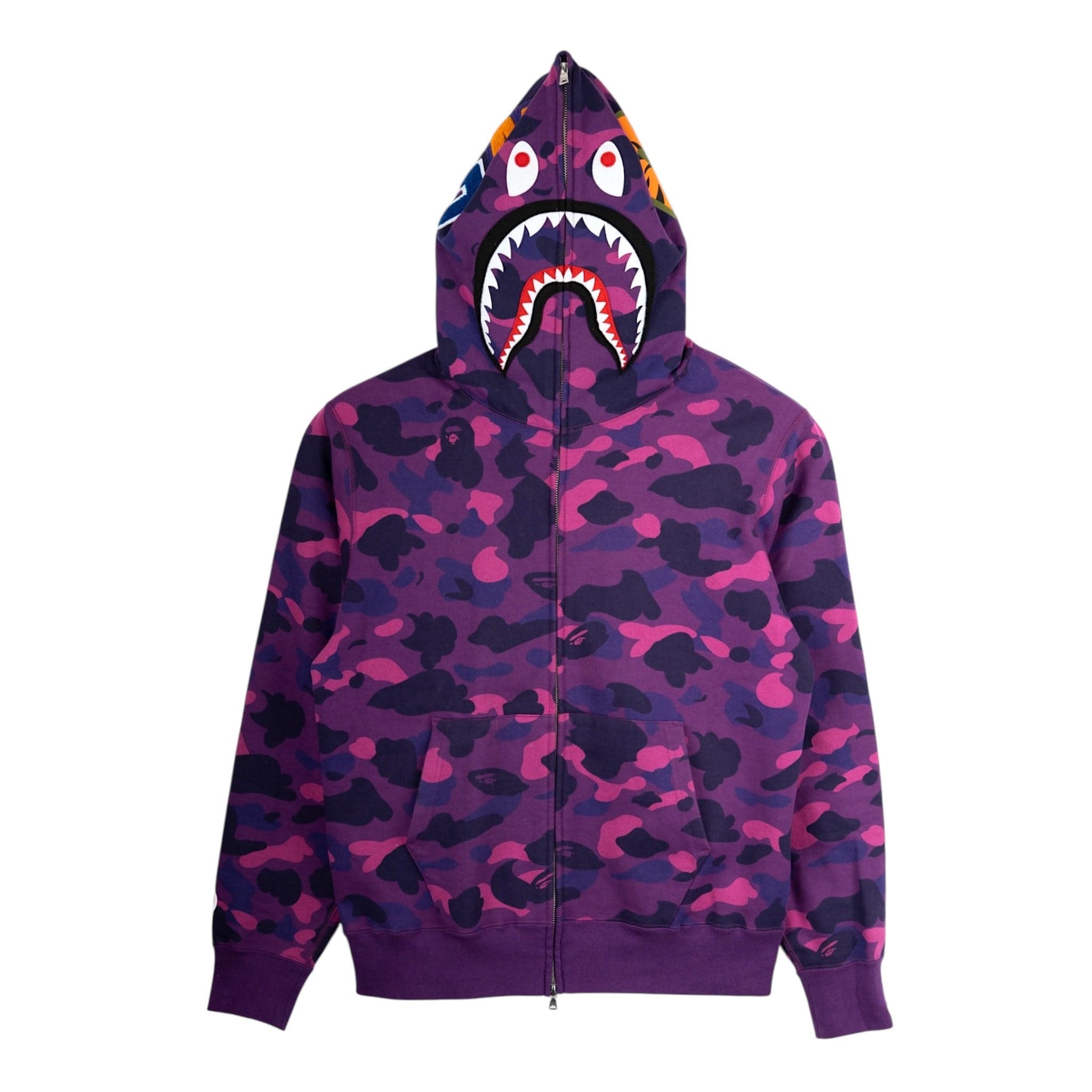 BAPE Shark Full Zip Up Hooded Sweatshirt Color Camo Purple