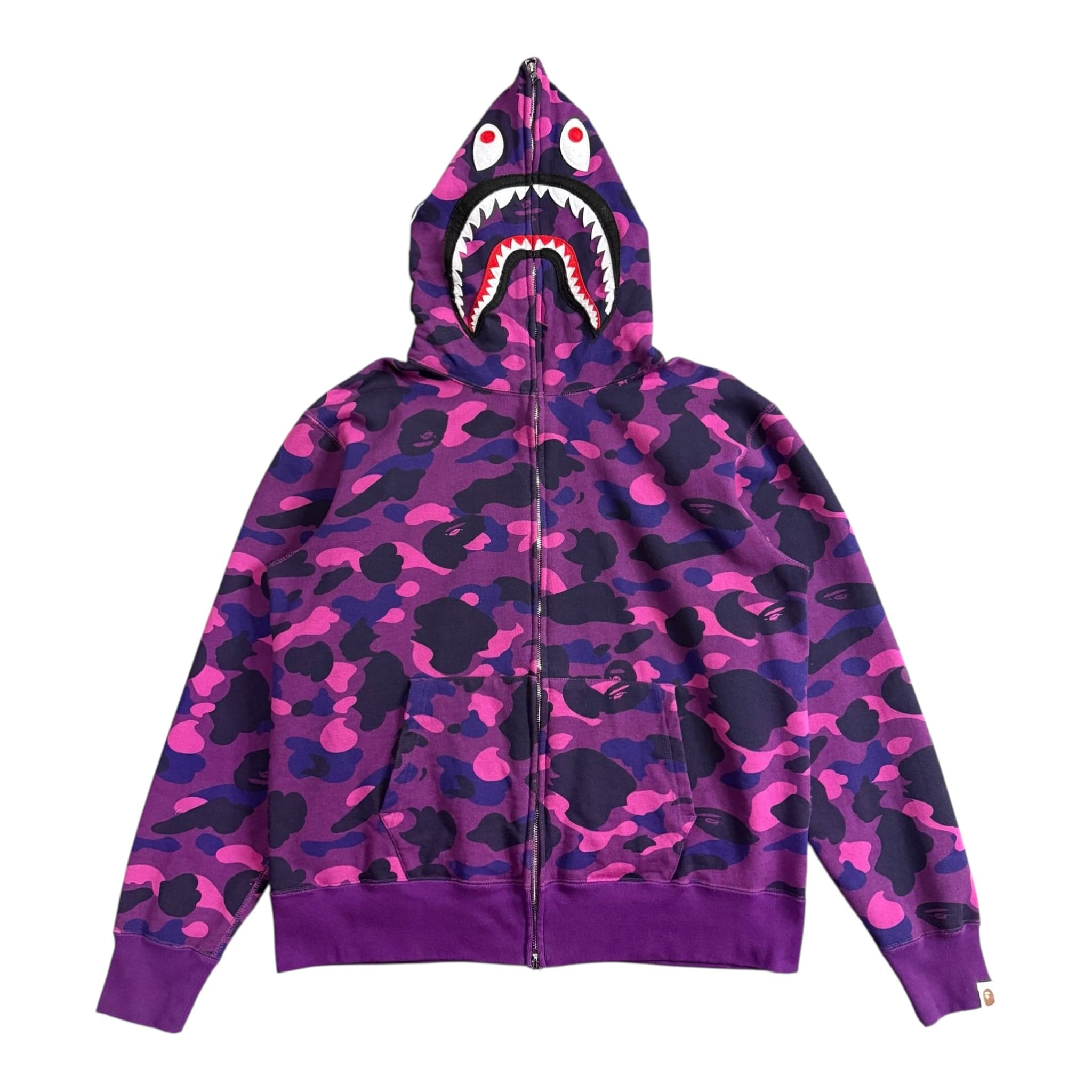 BAPE Shark Full Zip Up Hooded Sweatshirt Color Camo Purple