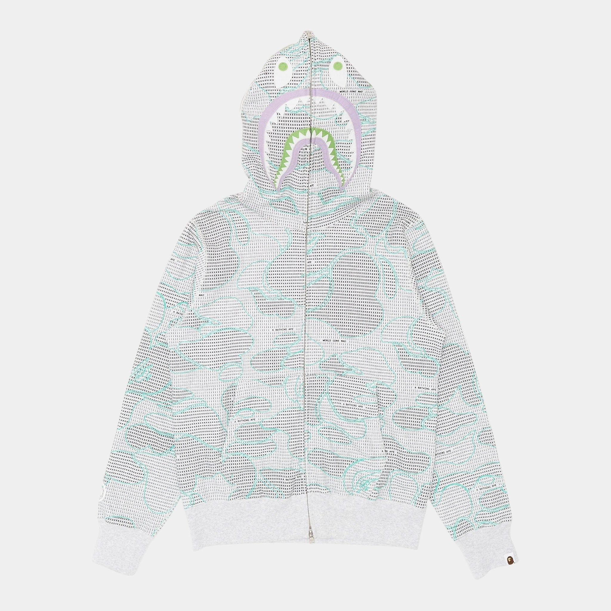 BAPE Shark Logo Full Zip Hooded Sweatshirt Text Code Camo Grey Multi