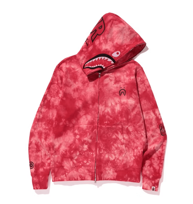 BAPE Shark Wide Fit Full Zip Hooded Sweatshirt Tie Dye Red
