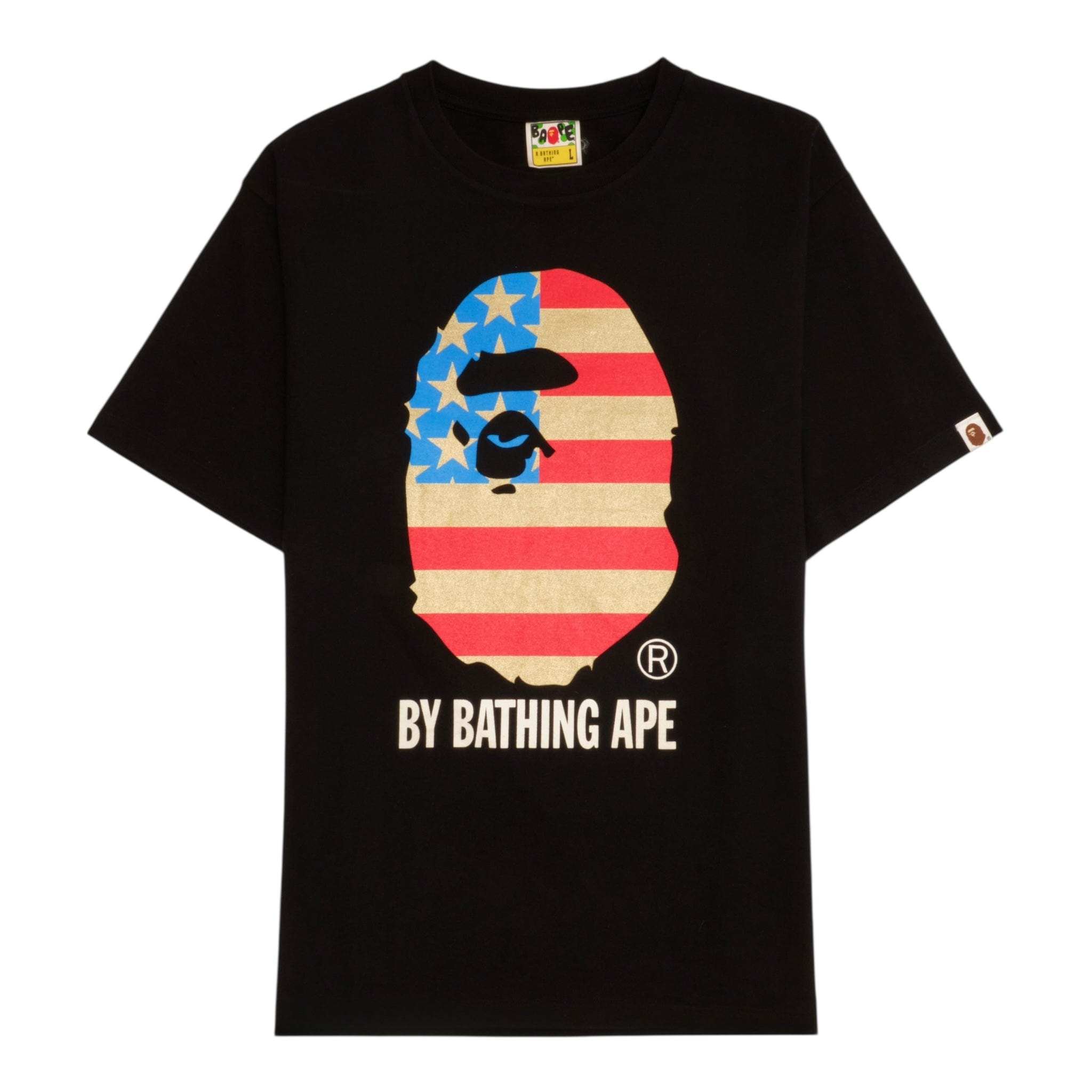 BAPE USA Gold Flag Big Ape Head Short Sleeve Tee Shirt Black