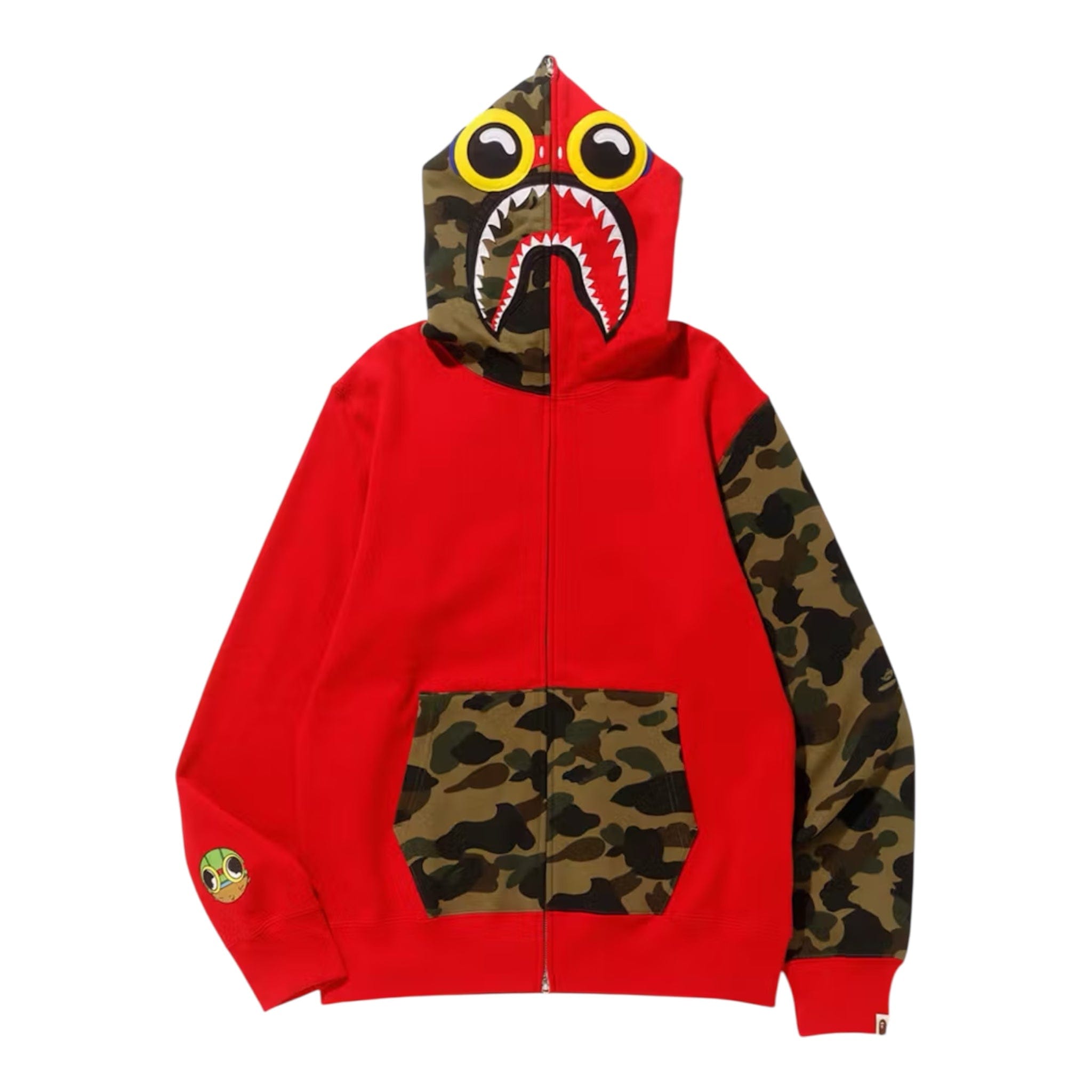 BAPE x Hebru Brantley Flyboy Shark Full Zip Hooded Sweatshirt Camo Red