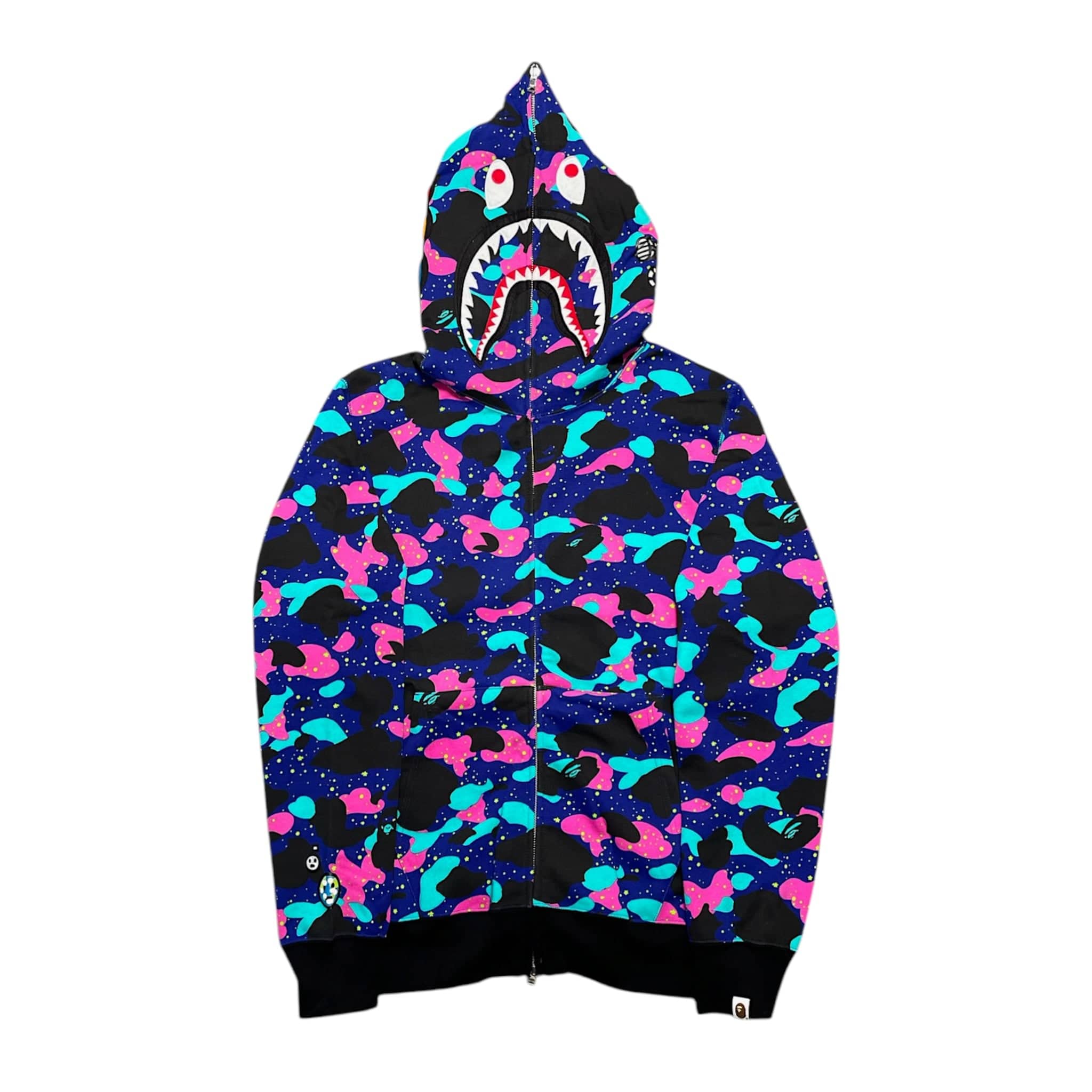 BAPE x Kid Cudi Shark Full Zip Up Hooded Sweatshirt Camo Multi