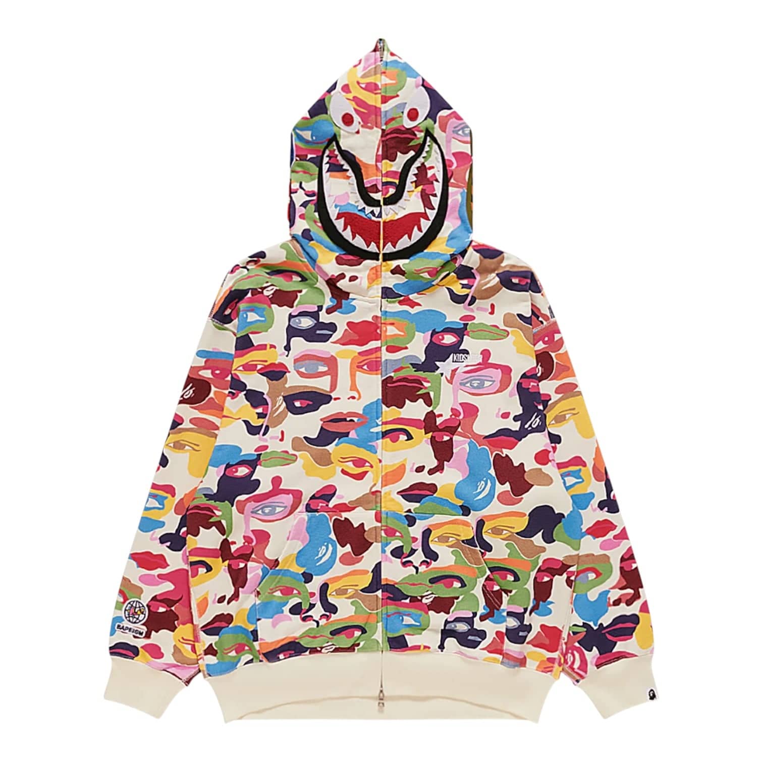 BAPE x Kidsuper Shark Zip Up Hooded Sweatshirt White Multi