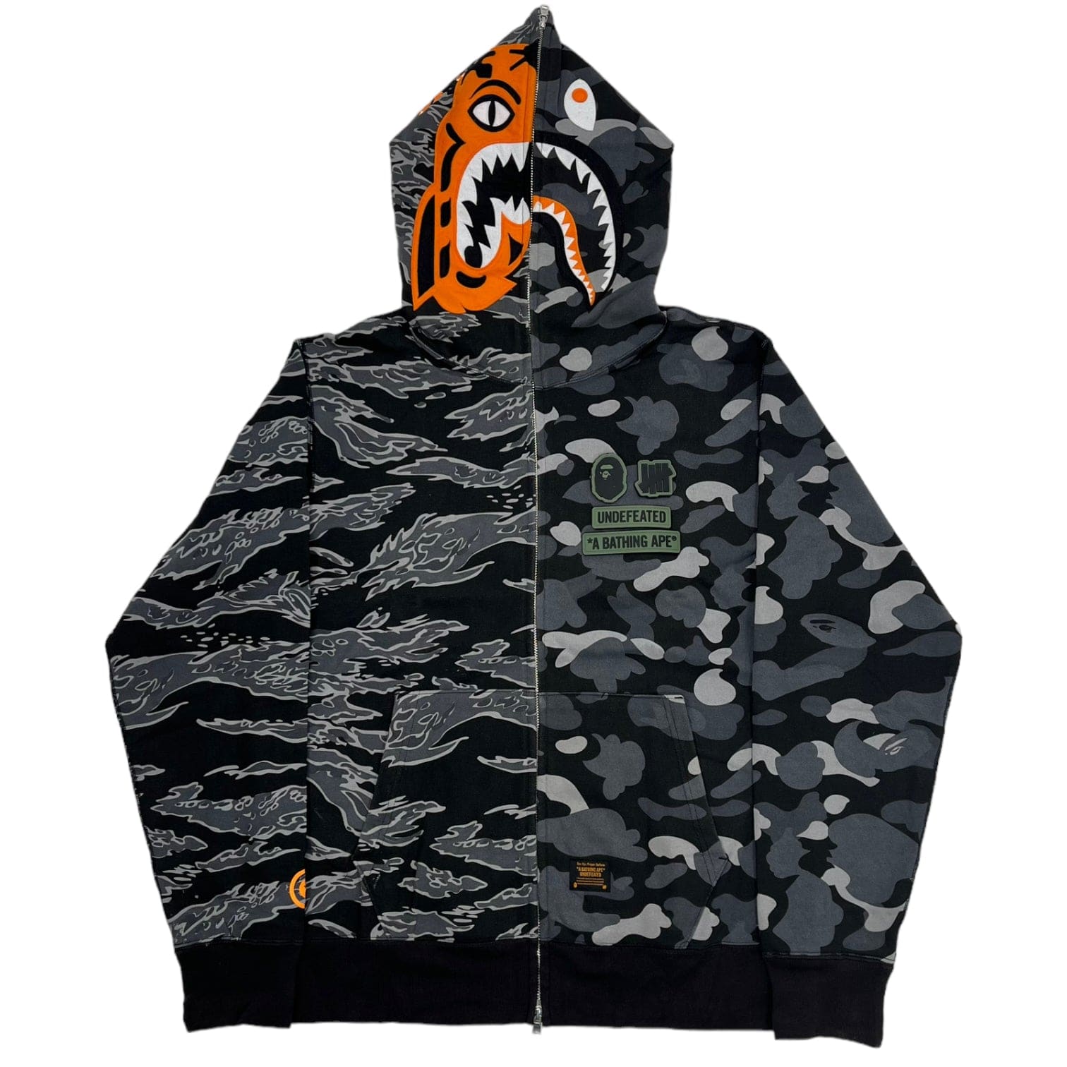 BAPE x Undefeated Tiger Shark Full Zip Hooded Sweatshirt Split Camo Black