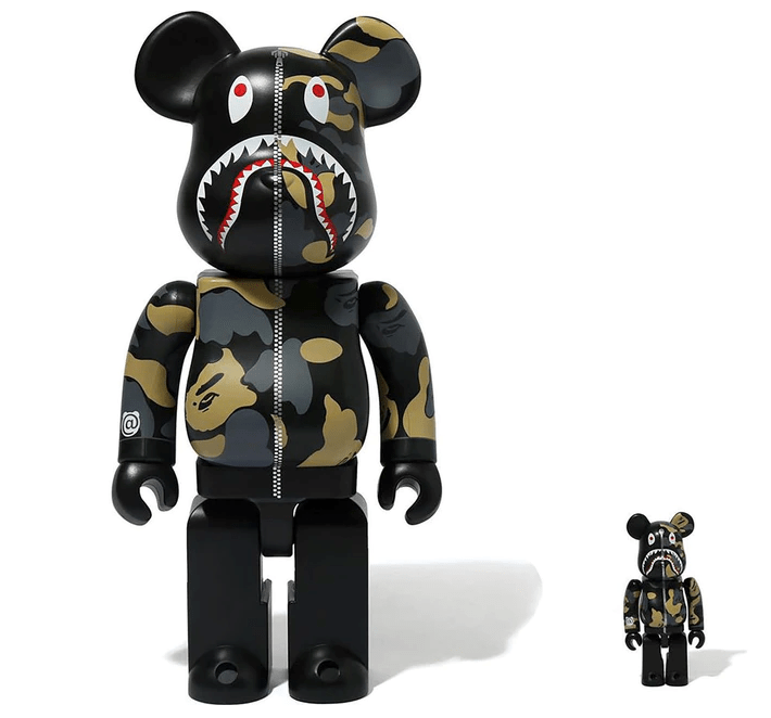 Origins NYC offers this Bearbrick x BAPE Madison Avenue Exclusive Shark Camo 100% & 400% Set