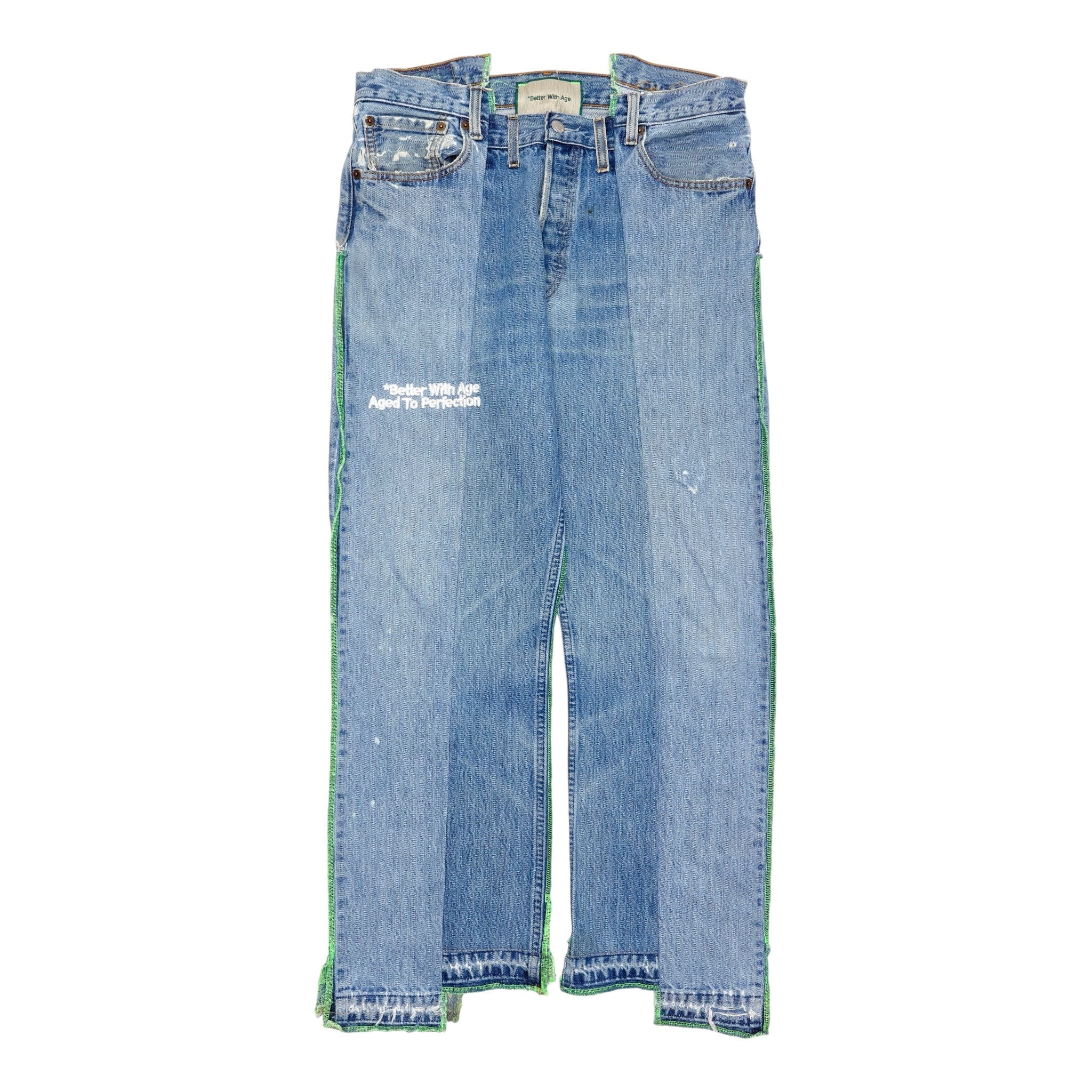 Better With Age Blue Derby Pleated Jeans Medium Wash Indigo