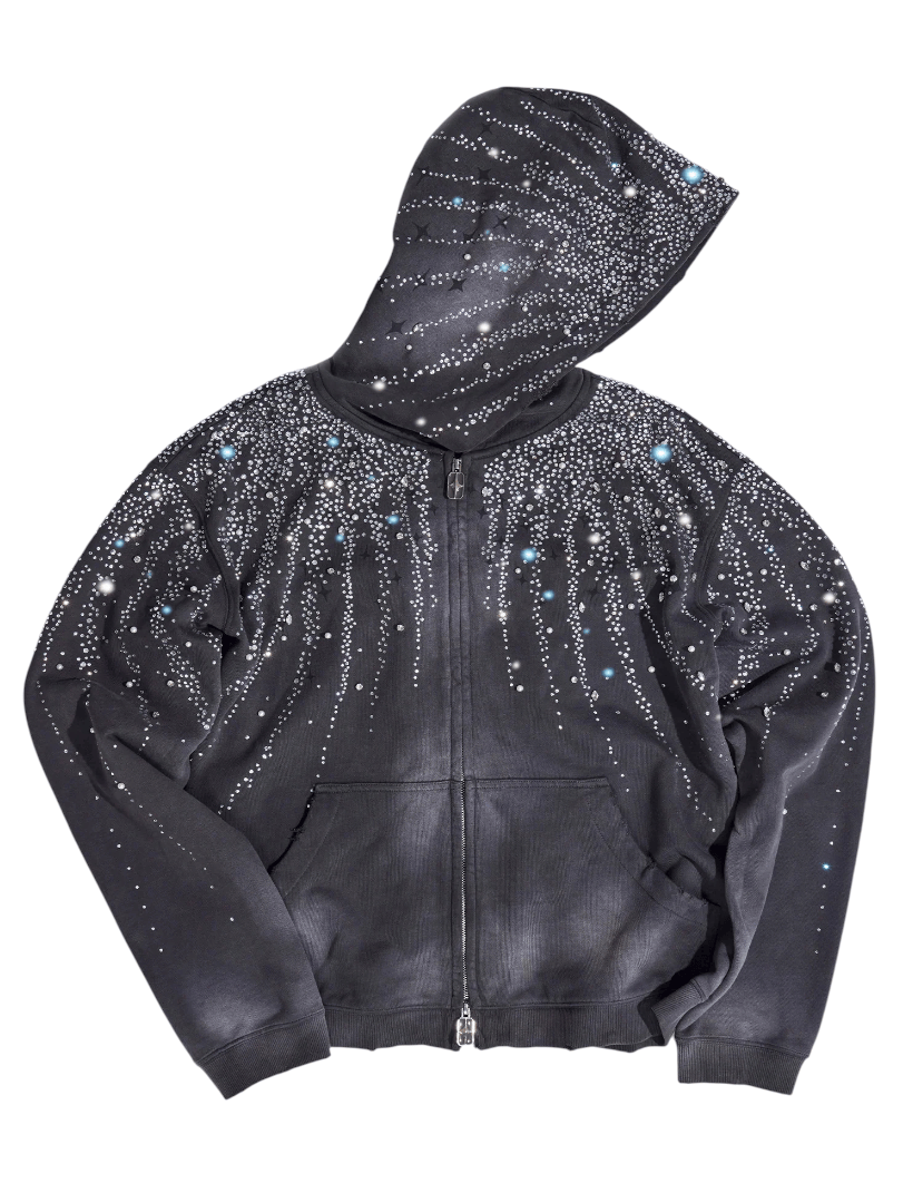 Birth Of Royal Child 20K Diamond Stellar Zip Up Hooded Sweatshirt Grey